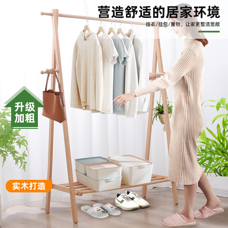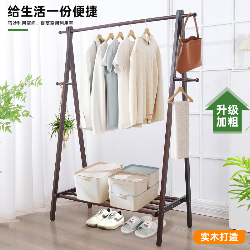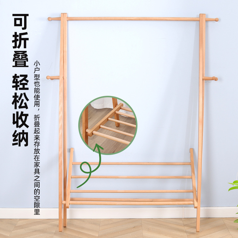 定制简易挂衣架落地卧室衣帽架家用多功能衣架室内折叠实木晾衣架