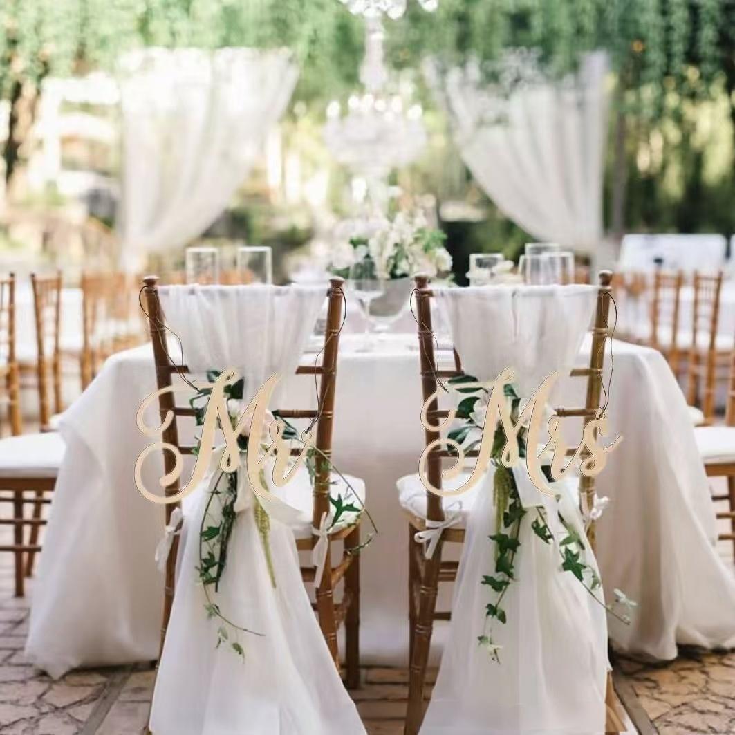 跨境新娘新郎婚礼标志挂牌Mr and Mrs椅子标志装饰木牌