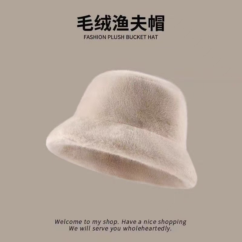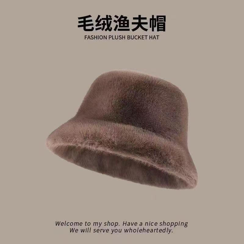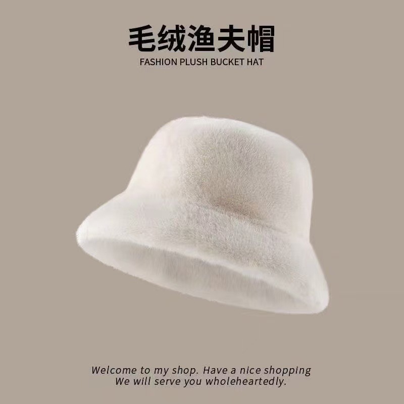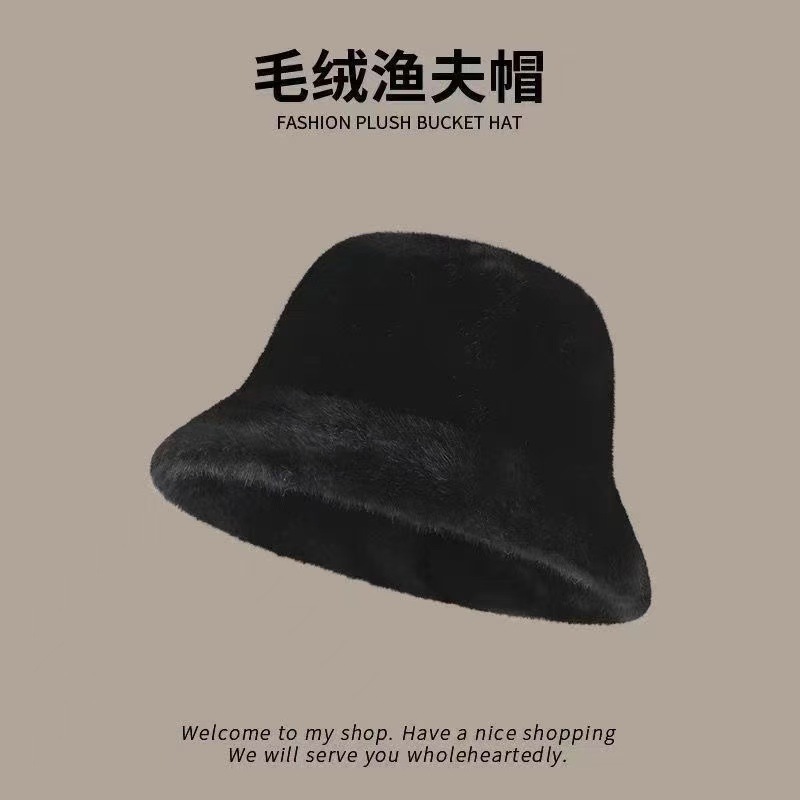 韩国ins风帽子女毛绒冬季百搭渔夫帽高颜值新款保暖加厚盆帽跨境