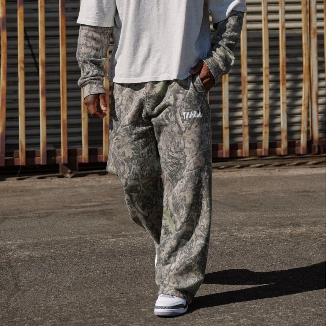 潮牌休闲裤数码迷彩印花直筒长裤运动健身宽松阔腿裤男士健身裤