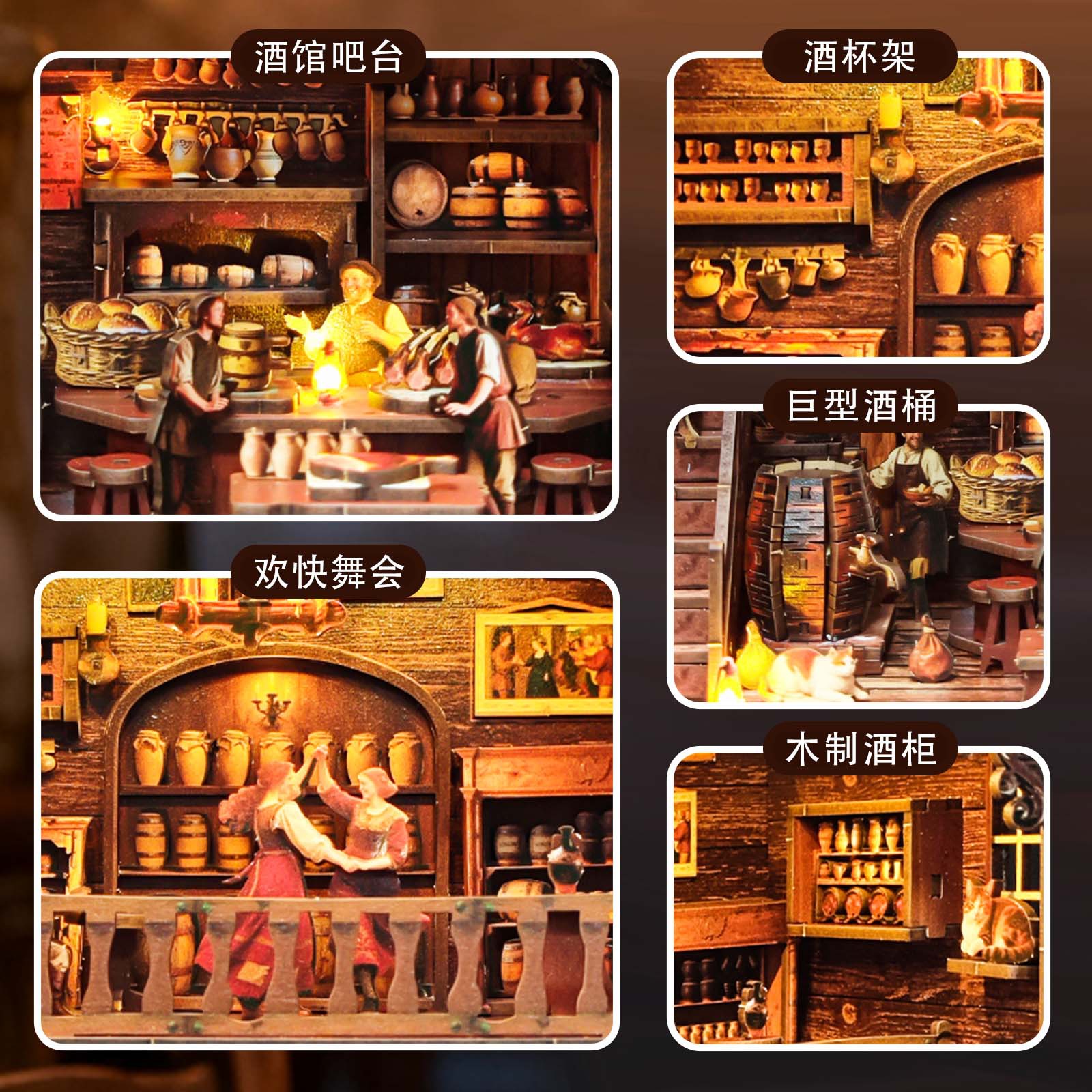 新款书立拼图旧时光酒馆diy小屋手工拼装感应书屋原创模型摆件
