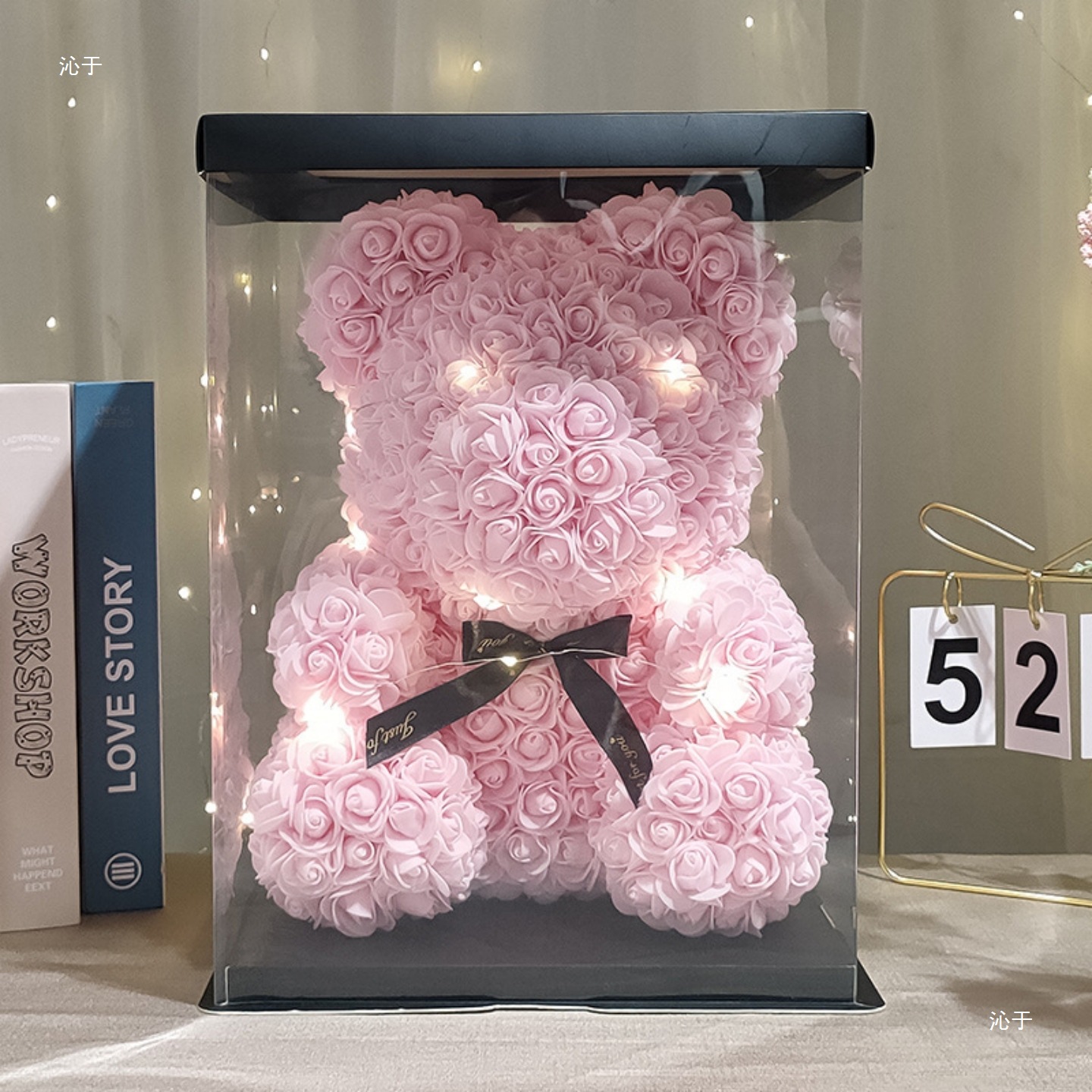 颜色 | 浅粉 40cm玫瑰熊+INS风礼盒+灯带 | | 颜色 | 深粉 40cm玫瑰熊+INS风礼盒+灯带 |