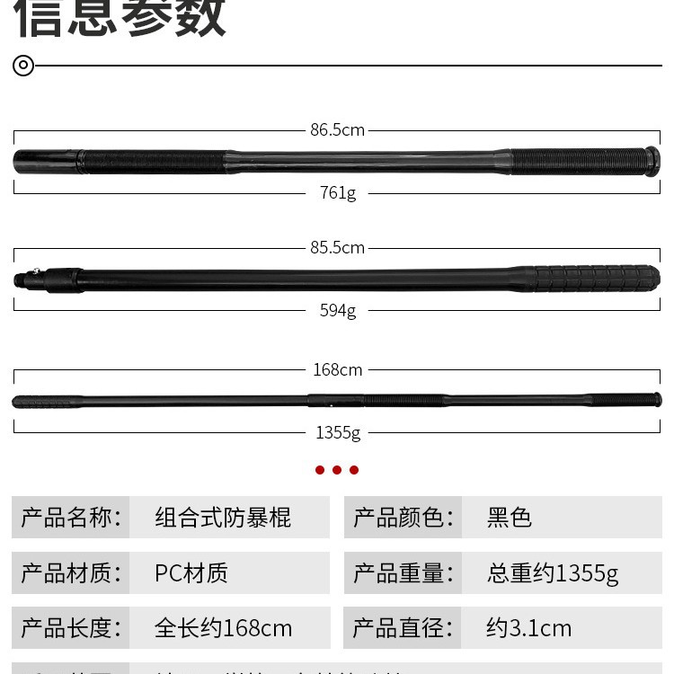 1.6米PC橡胶棍应急棍组合防暴棍武术训练棍齐眉棍保安户外防身棍