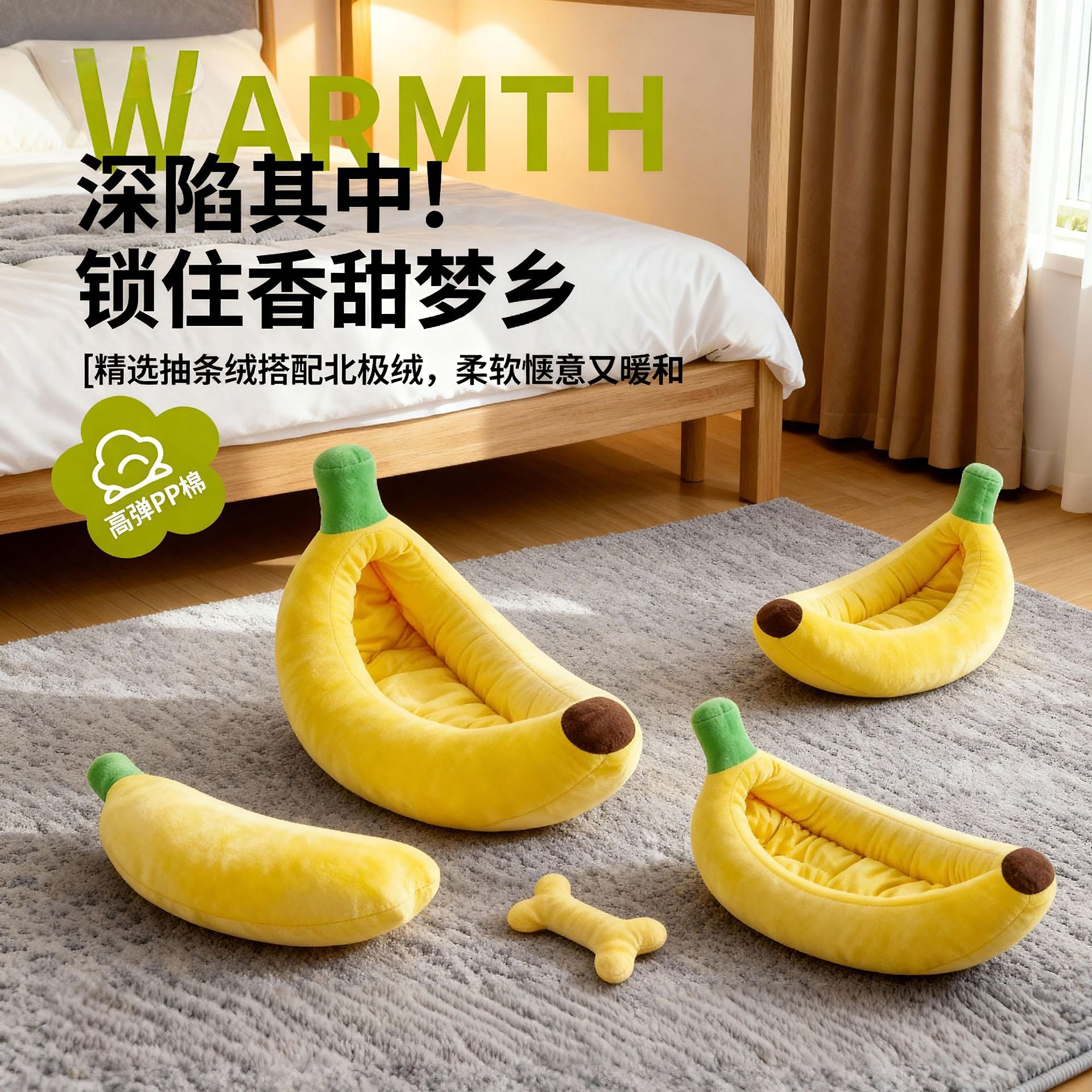 冬季爆款香蕉保暖猫窝 单黄色香蕉造型泰迪狗狗四季温馨宠物窝