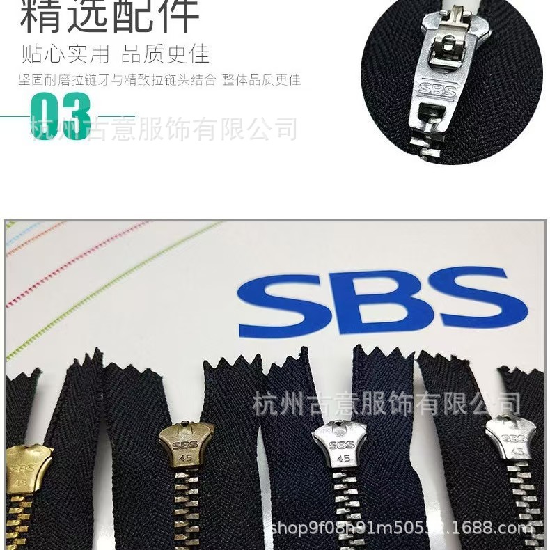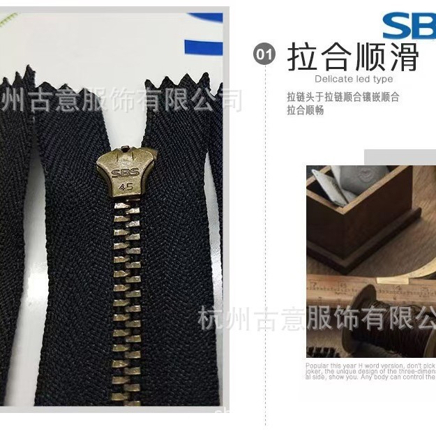SBS3号青古铜弹簧头闭尾拉链瑜伽服前中口袋闭尾拉链