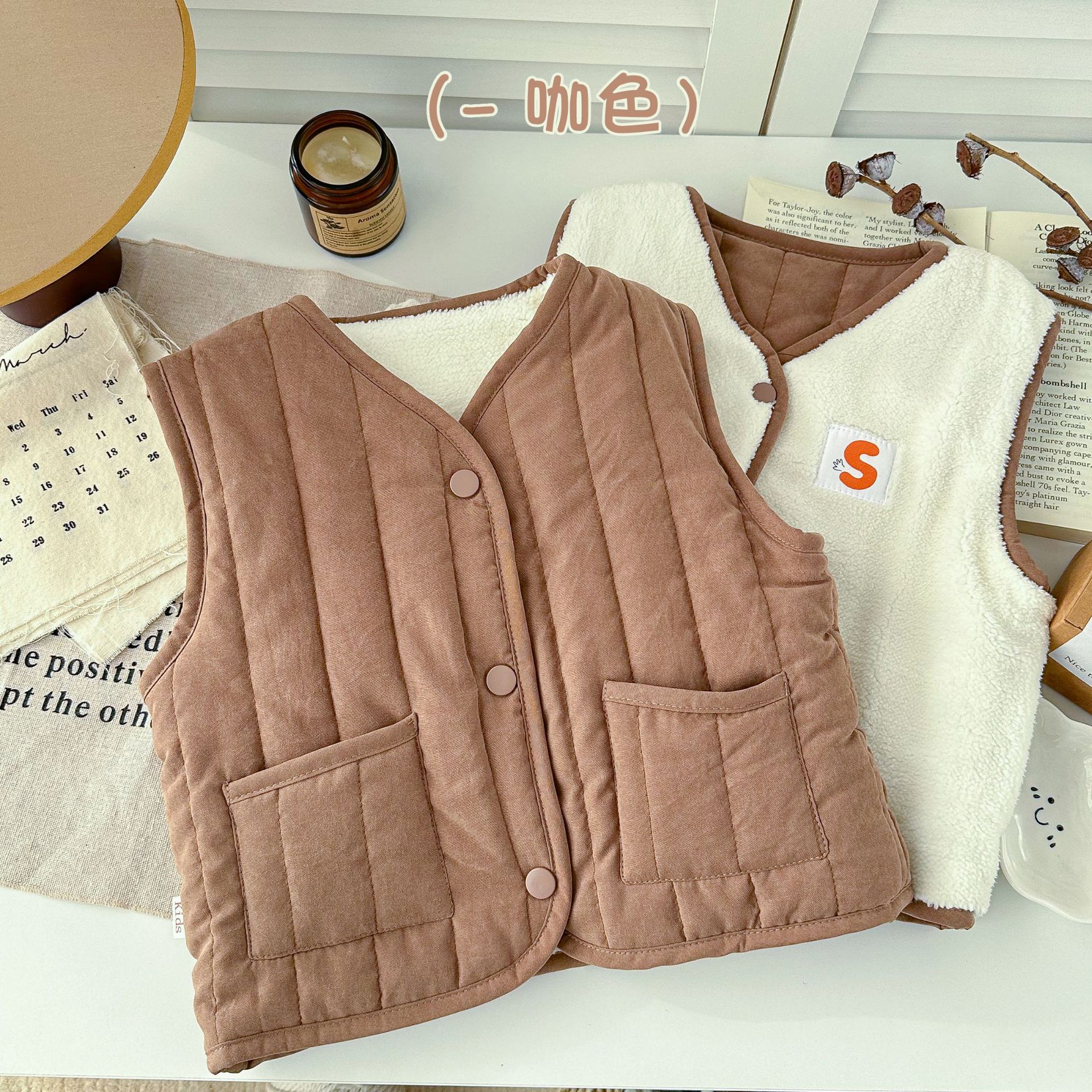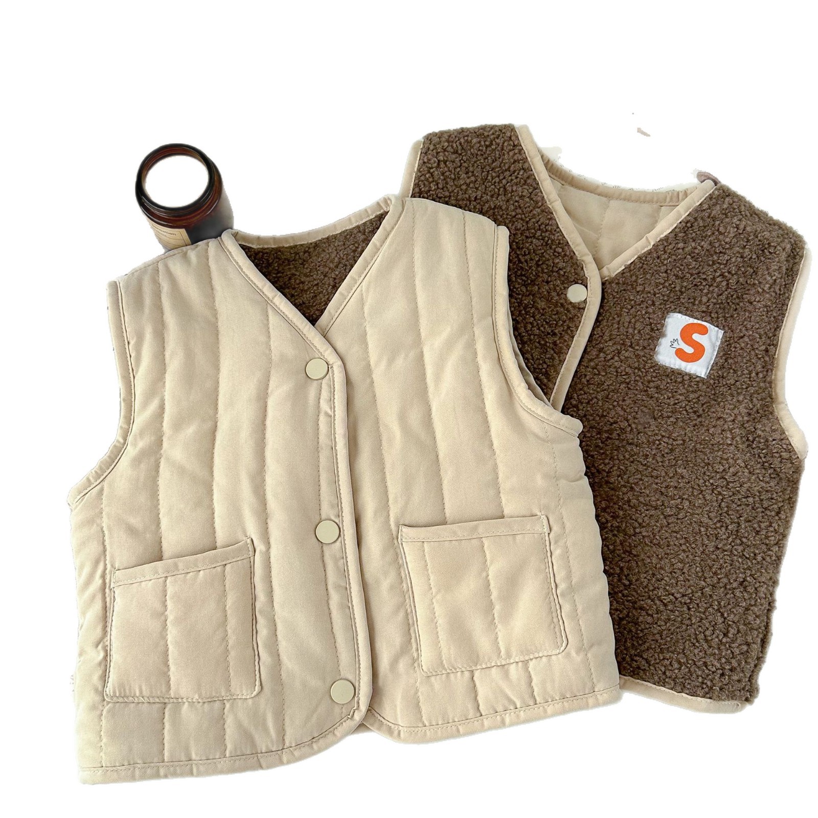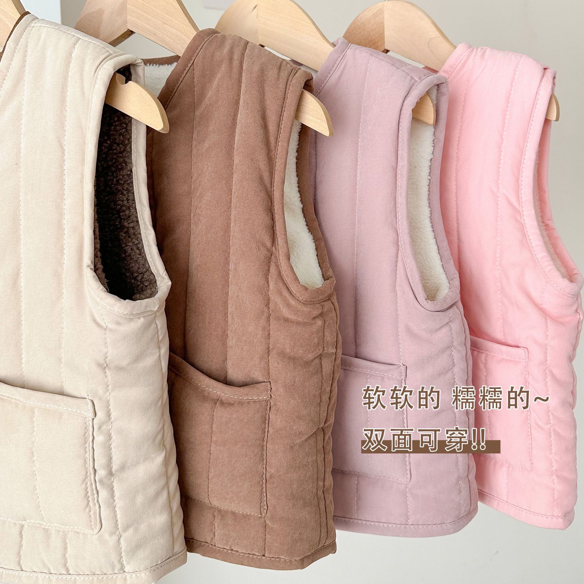 新款儿童马甲羊羔绒男女童双面保暖马甲宝宝加厚背心加绒内搭外穿