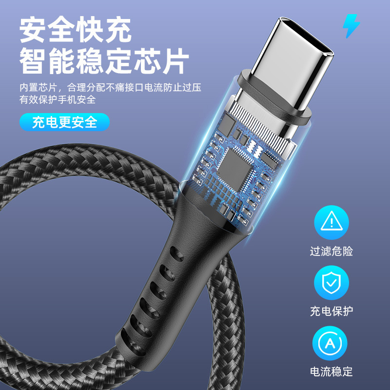 长尾typec手机充电线usb快充数据线适用苹果华为oppo小米三星vivo