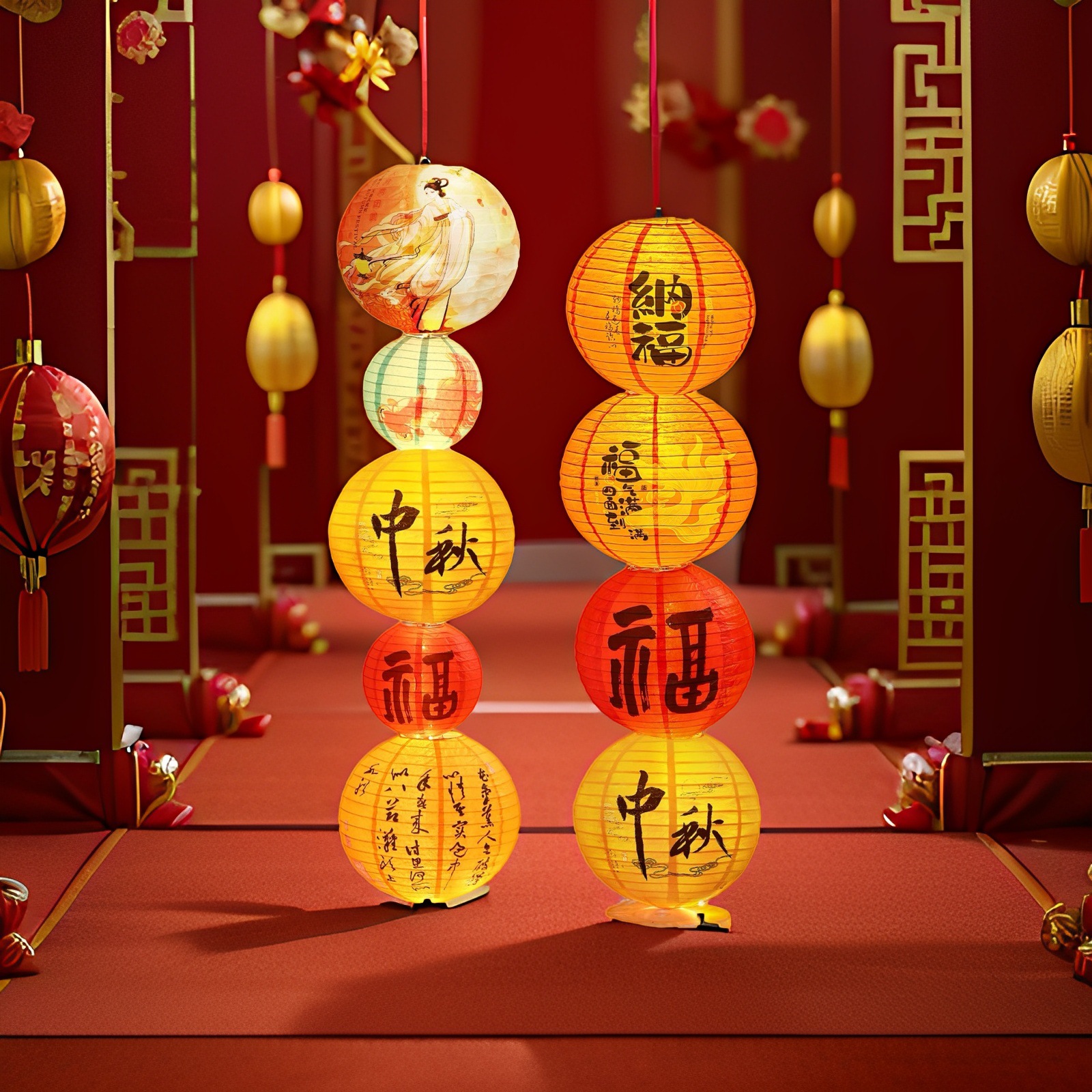 新款中秋节装饰国风纸灯笼场景布置商场挂饰折叠古风地摆道具国风