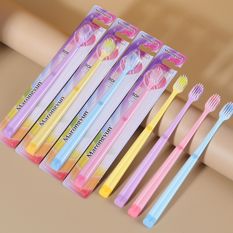 超市家用牙刷批发男女成人马卡龙色牙刷单支装爱心款成人软毛牙刷