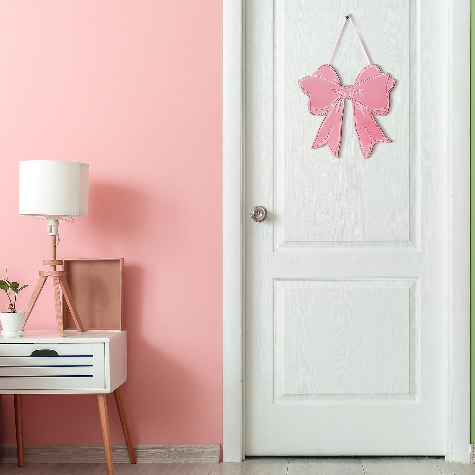 2025新品情人节木质挂牌粉红蝴蝶结少女系创意房间装饰家居摆件