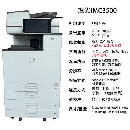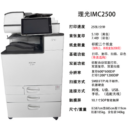| 颜色规格 | 理光IMC2500 | 颜色规格 | 理光IMC3000彩机 支持无线打印 |