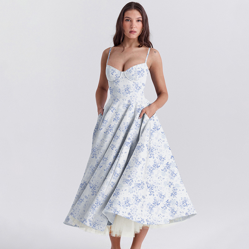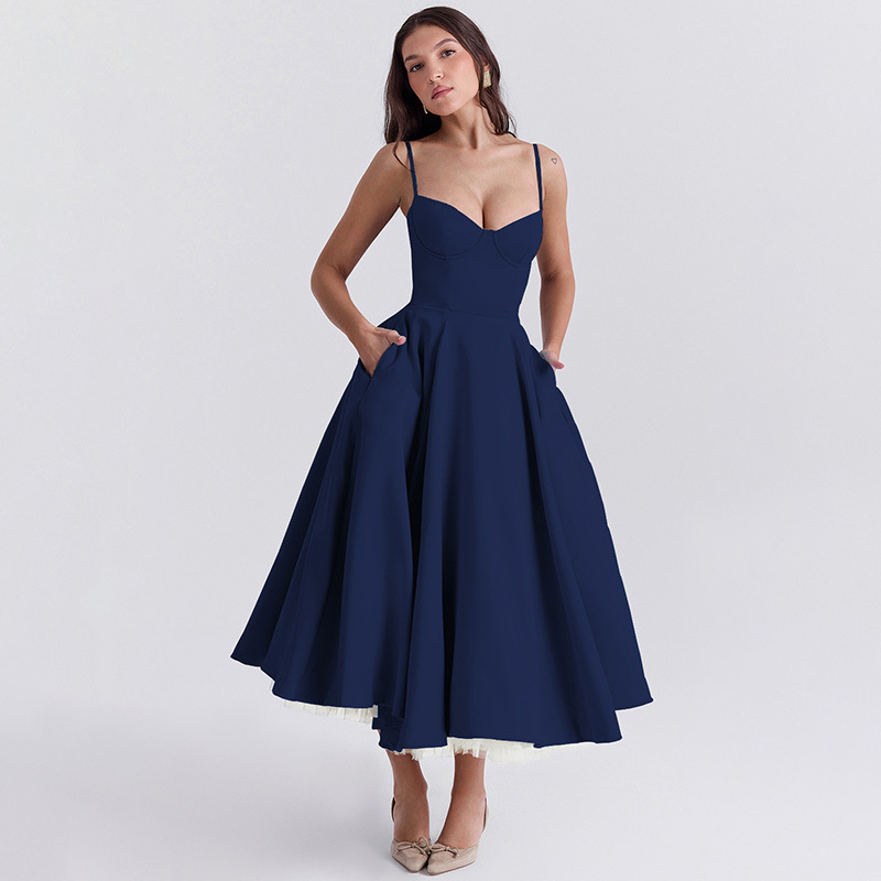 2025夏季新款高级感公主礼服法式网纱大摆双层吊带时尚连衣裙女