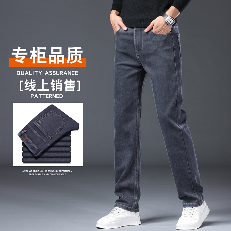 秋冬高端牛仔裤男士直筒宽松潮流长裤2025新款百搭商务休闲裤子男