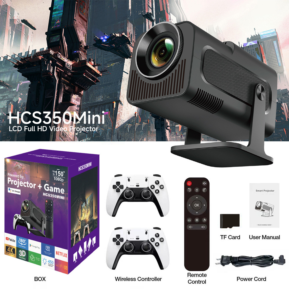 跨境爆款S350MINI游戏投影仪配双手柄智能家用超高清4K机大屏
