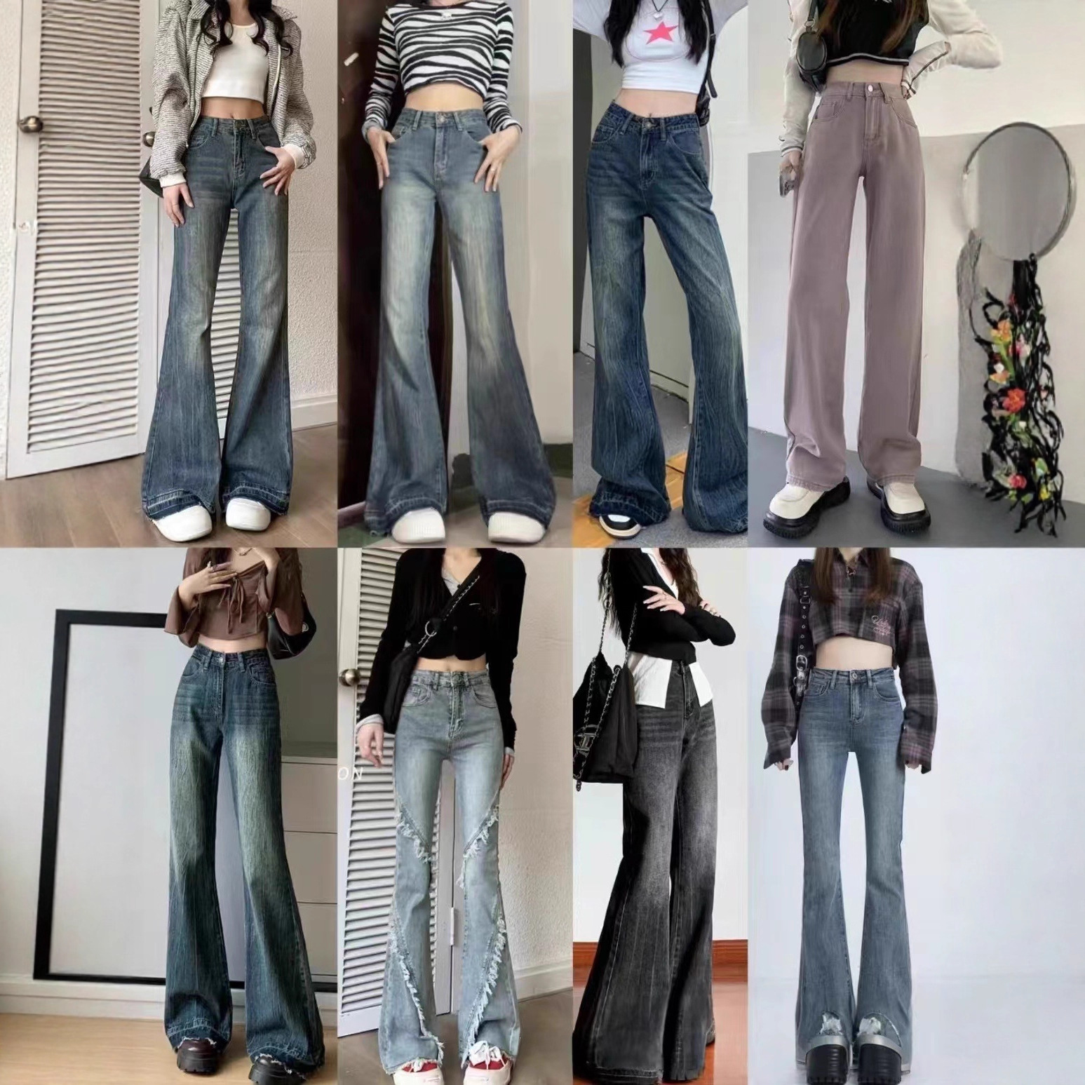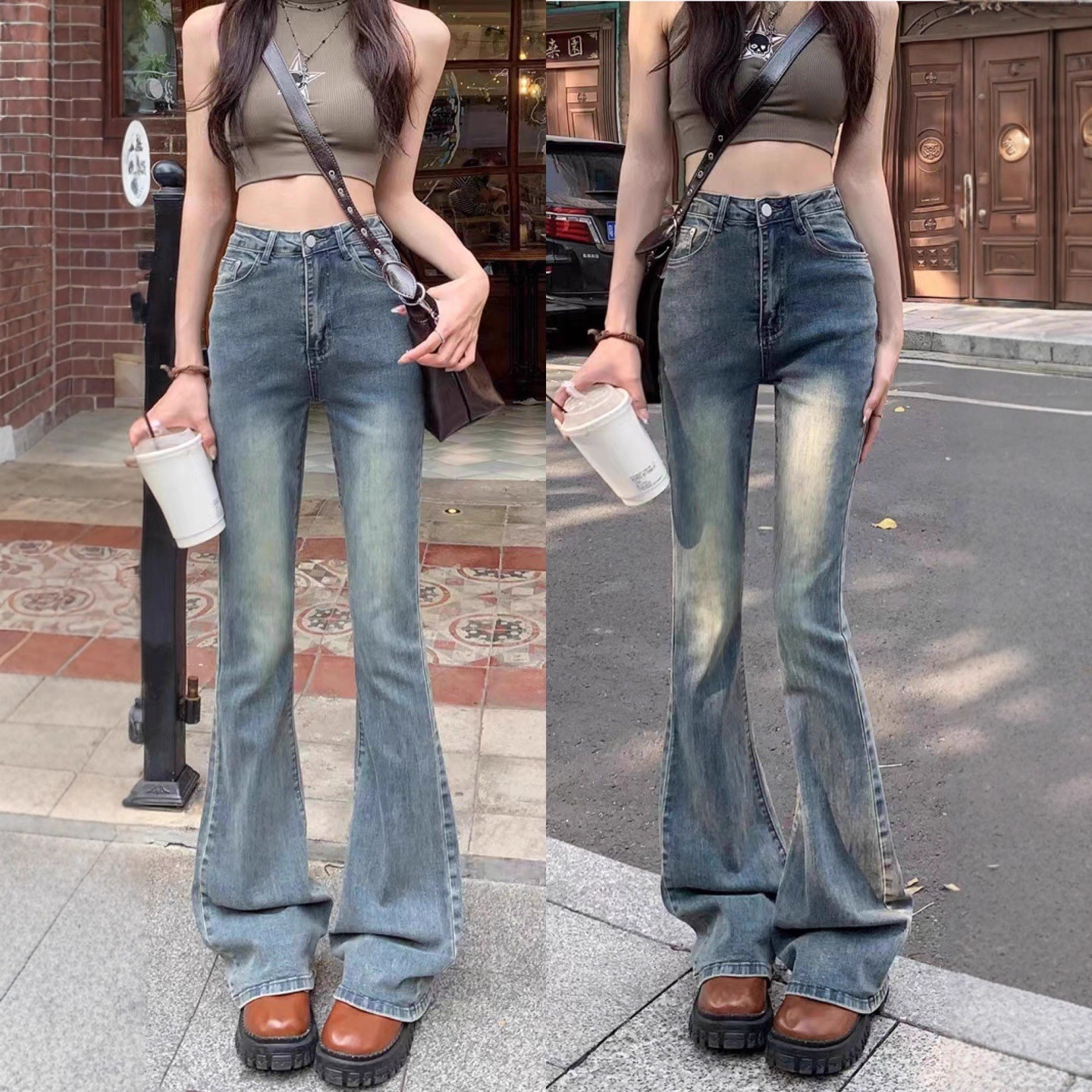 复古高腰微喇牛仔裤小个子宽松显瘦喇叭裤大码时尚裤春季新款百搭