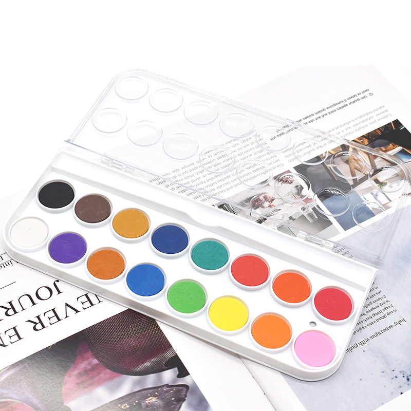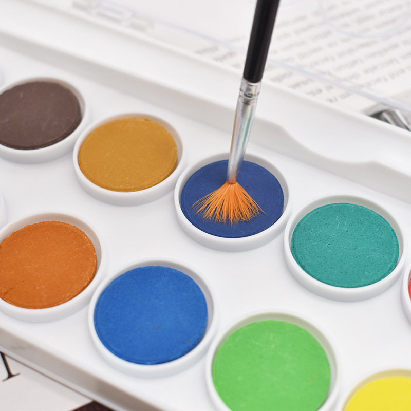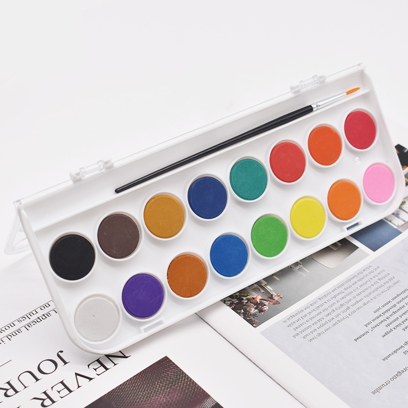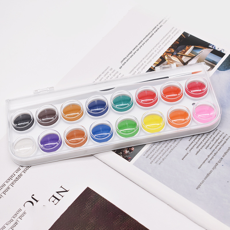 16色固体水彩水粉颜料塑料盒套装初学者粉饼美术固体水彩厂家批发