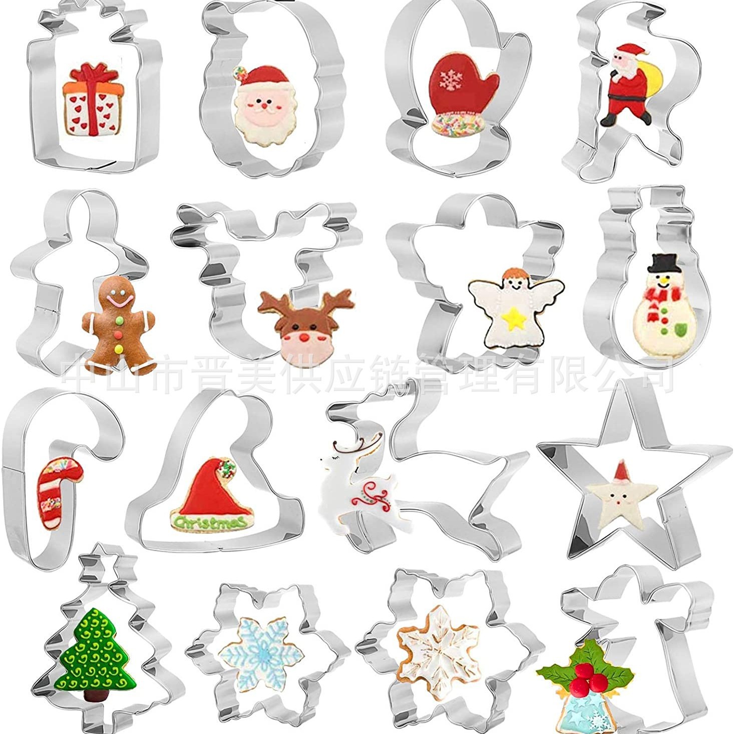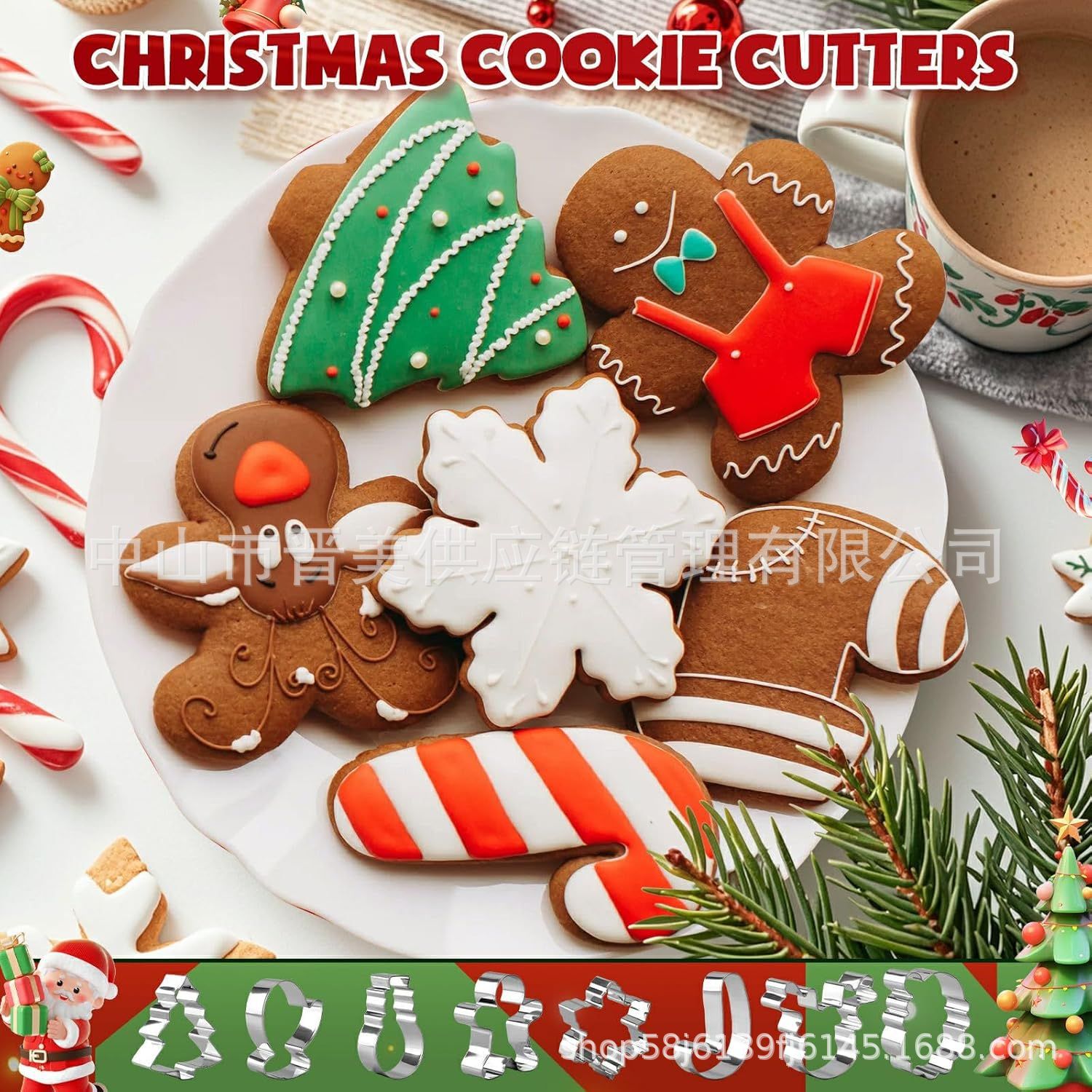 跨境圣诞节系列套装饼干模具不锈钢雪人圣诞树一体烘焙按压式工具