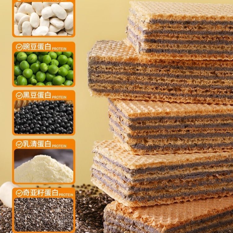 白芸豆奇亚籽威化夹心蛋白棒威化饼干代餐饱腹200克/盒 一件代发
