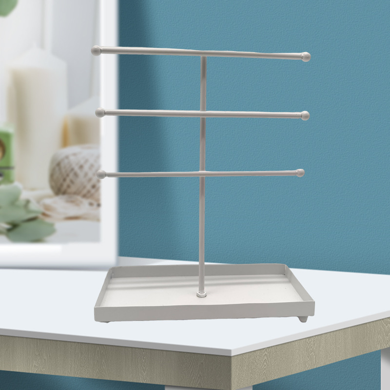 创意铁艺饰品架带托盘首饰架耳环收纳架挂项链架子饰品展示架