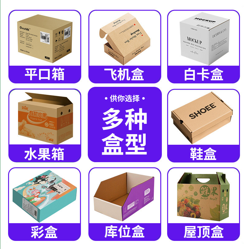 材质规格材质:白卡纸 / 牛皮纸 / 瓦楞纸 / 铜版纸 克重:250g/350g/400g 层数:单层 /