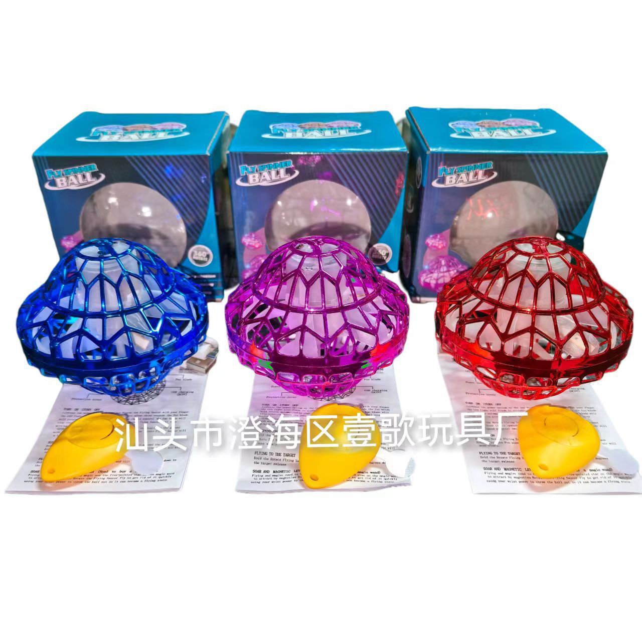 跨境亚马逊UFO回旋飞碟炫彩灯光魔法悬浮球指尖旋转陀螺回旋飞球