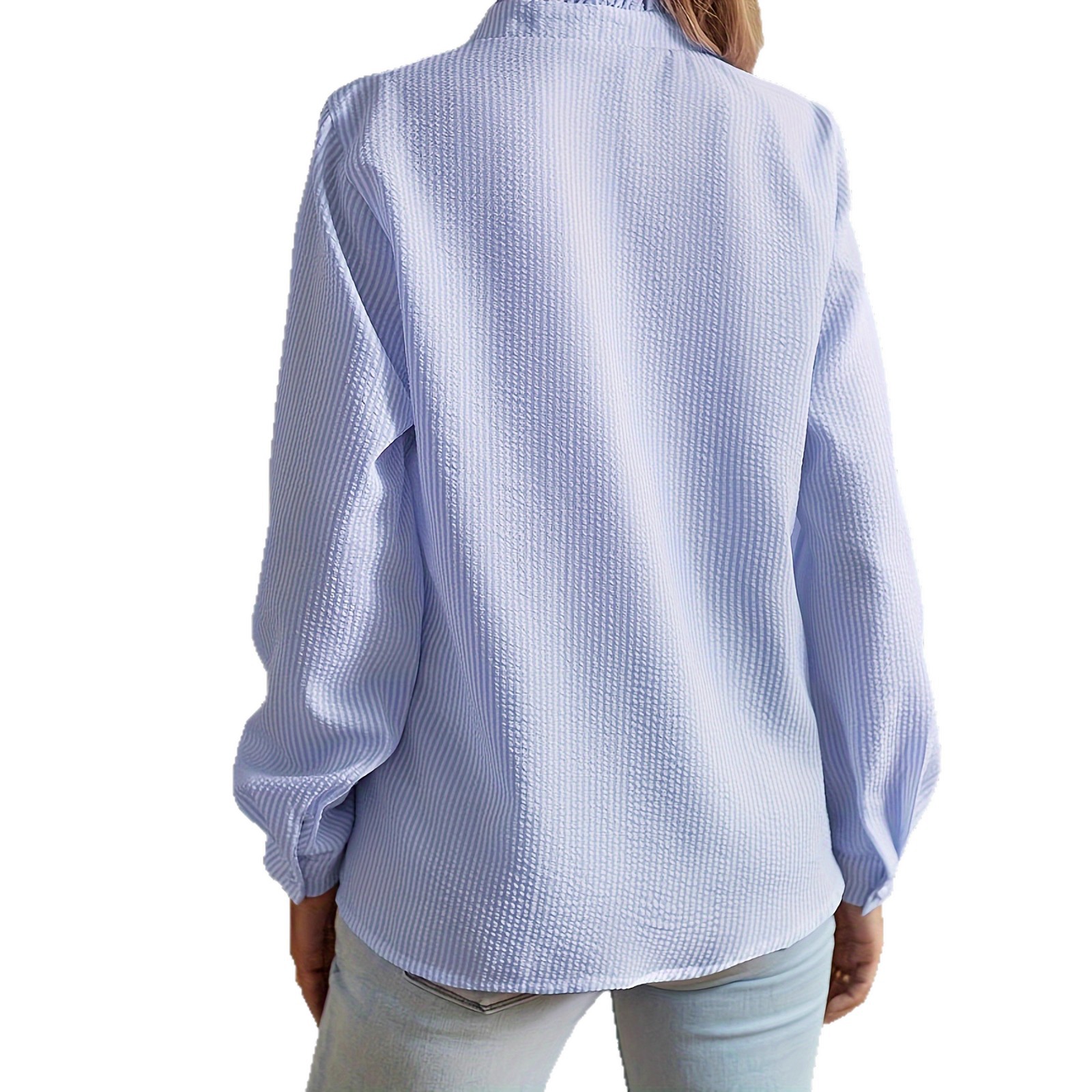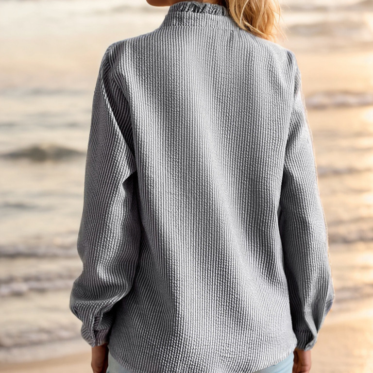 2025新款欧美跨境立领秋季木耳边开衫荷叶边长袖泡泡上衣女装衬衫