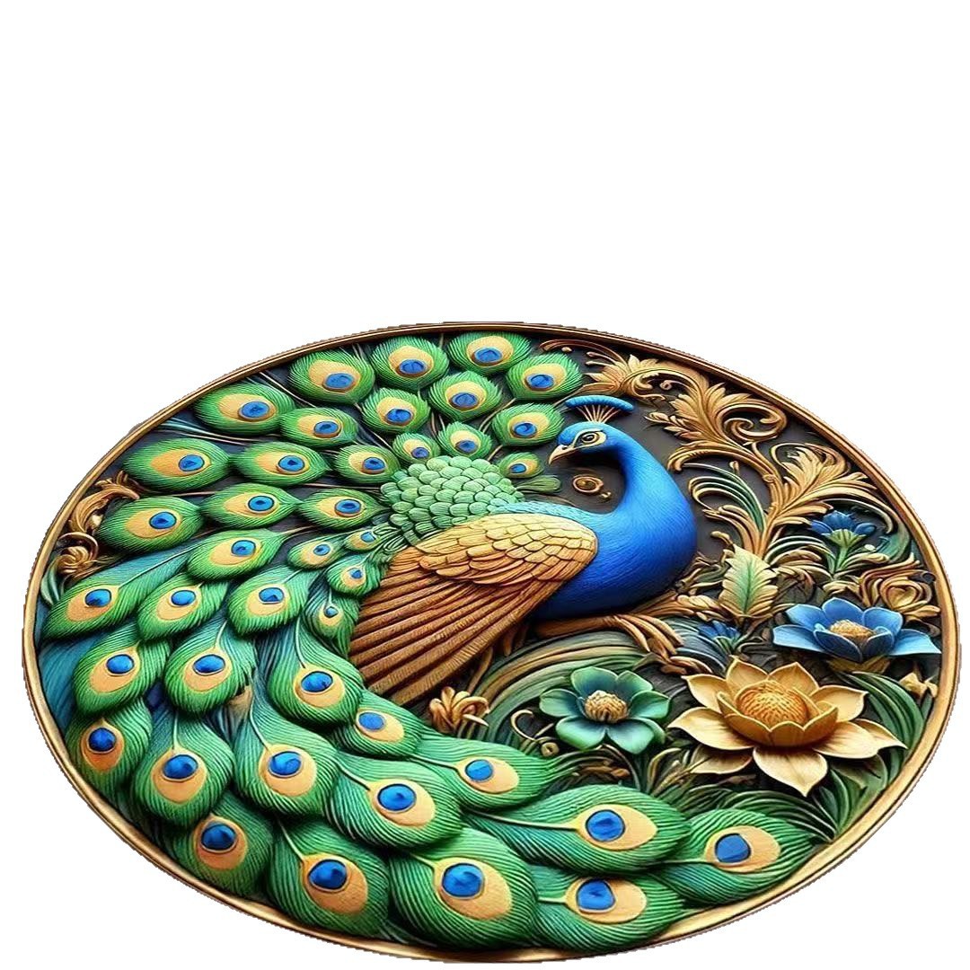 跨境新款孔雀圆形地毯客厅书房电脑椅地垫沙发卧室地垫装饰门垫