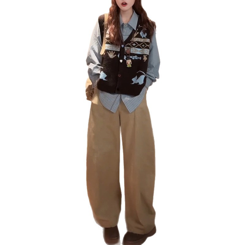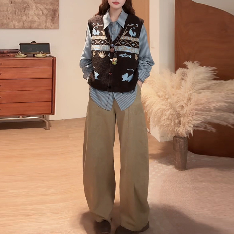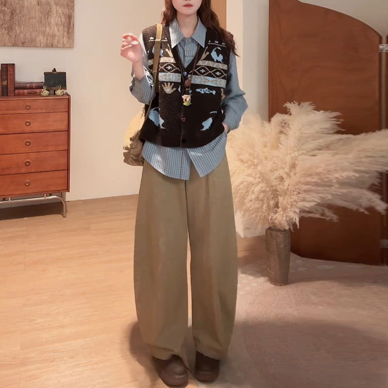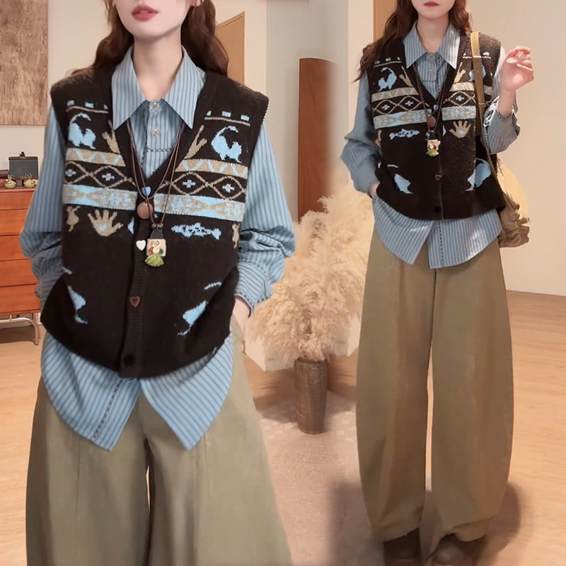 老钱风松驰感小个子套装女2025春秋新款垂感三件套 长袖衬衫针织