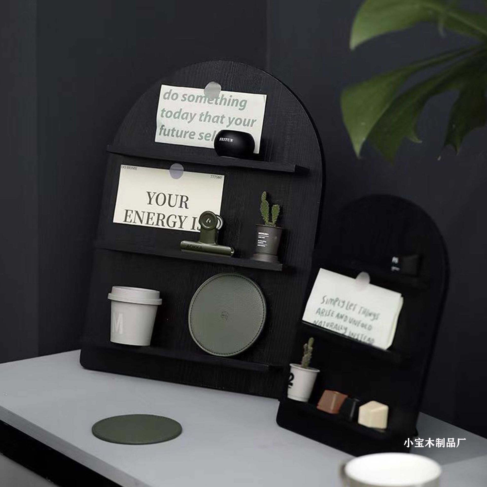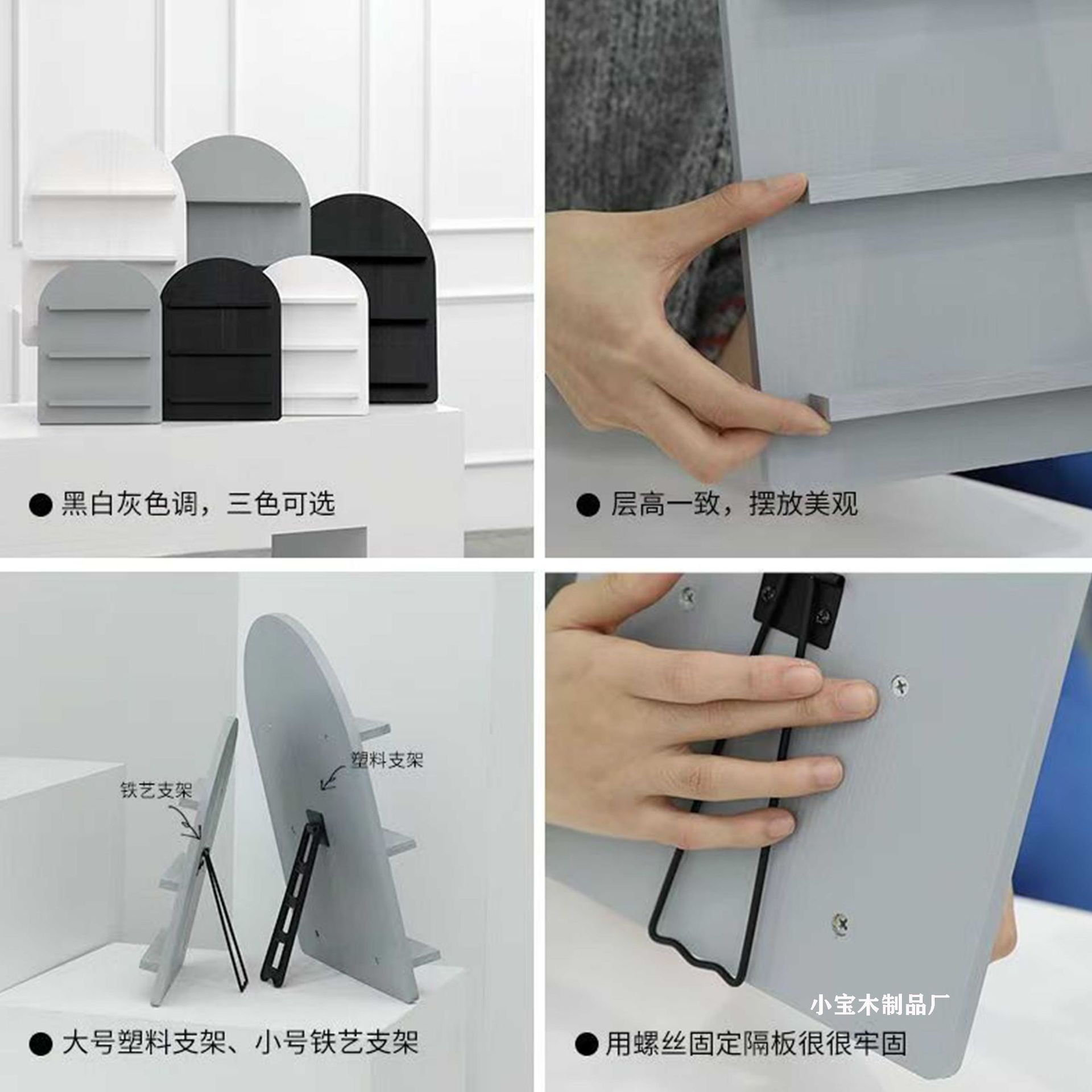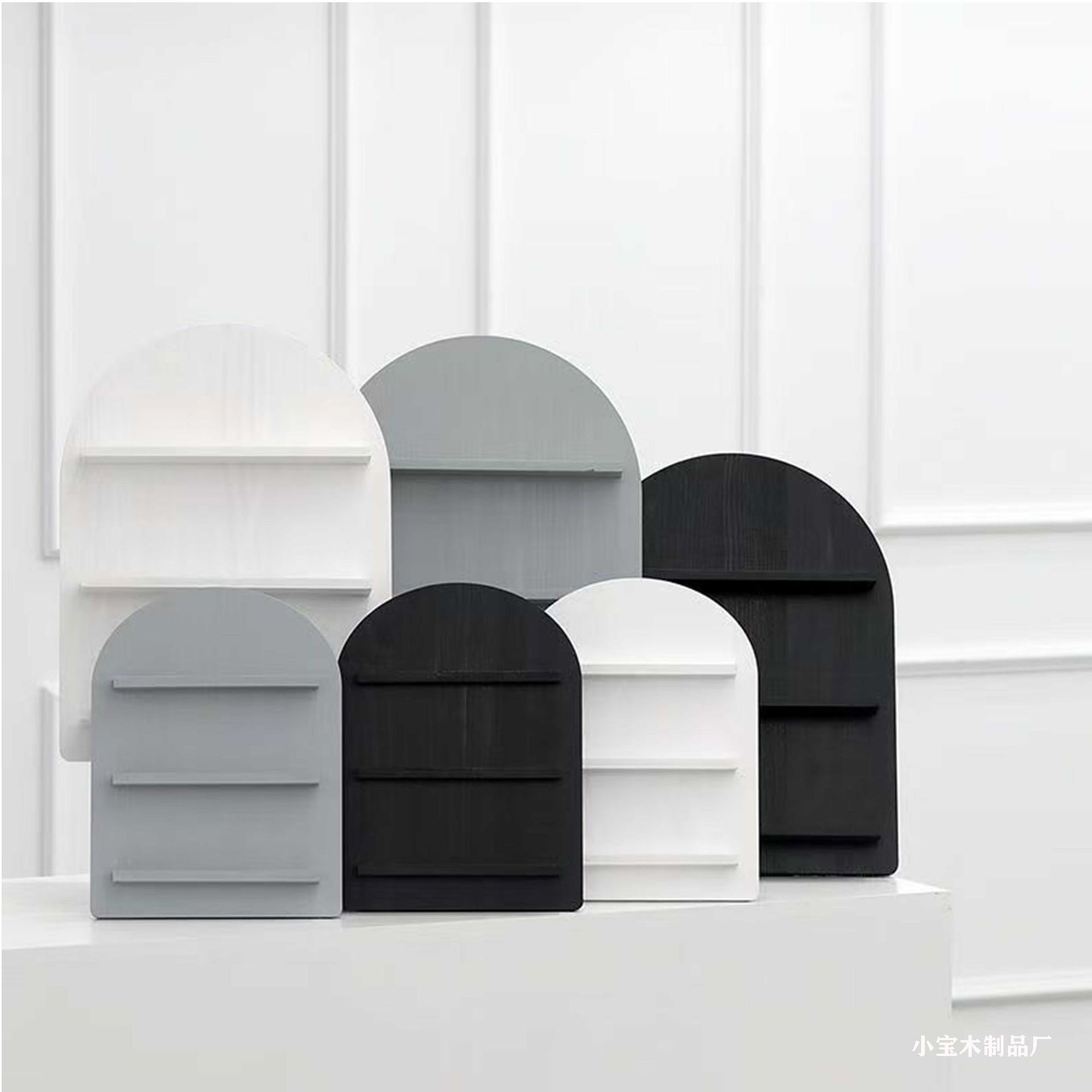 北欧家居冷色调木质收纳架 ins风化妆品收纳架 黑白灰圆拱形隔板