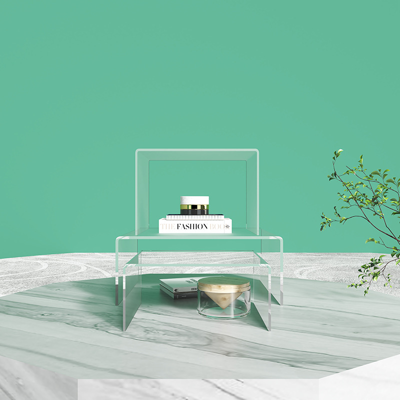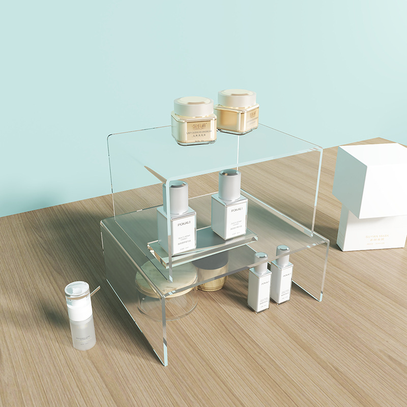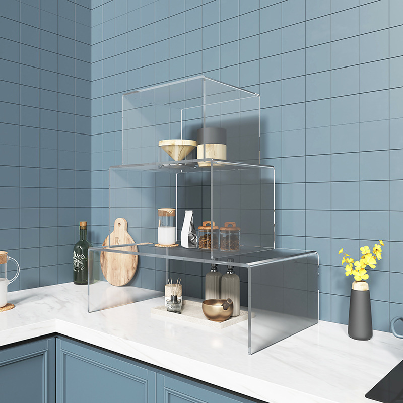 定制透明一体成型热弯U型架亚克力置物架桌面手办模型多层展示架