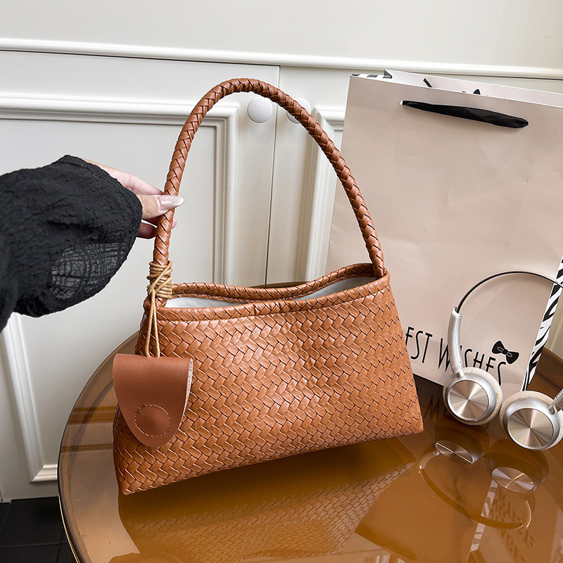 潮流编织通勤单肩包新款休闲韩系洋气质感枕头包复古女士斜挎包