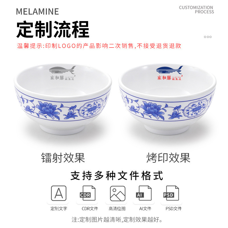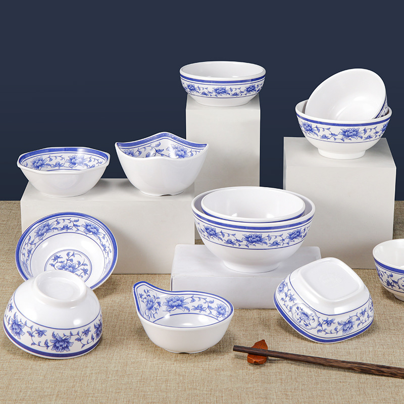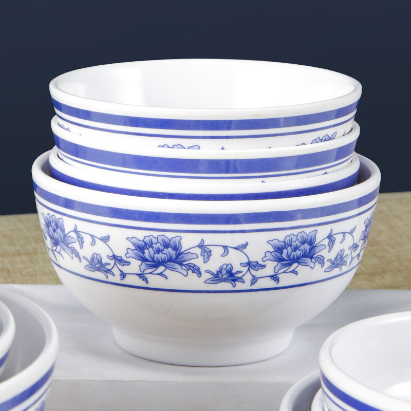 密胺青花瓷中式小碗商用餐厅调料碗瓷餐具塑料粥汤碗快餐米饭碗