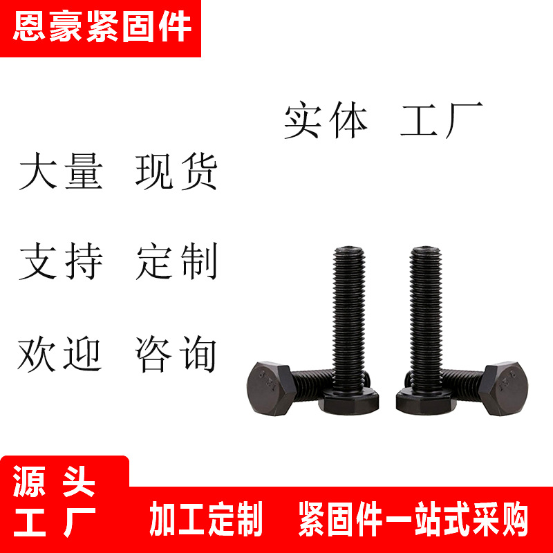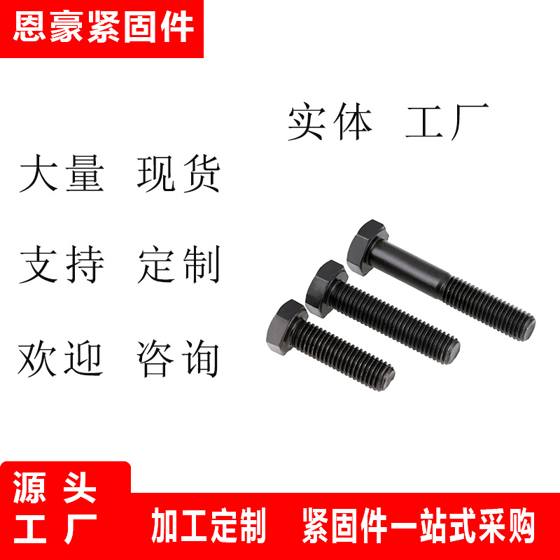 高强度外六角螺栓8.8级螺丝发黑全牙半牙加长六角头螺杆全螺纹