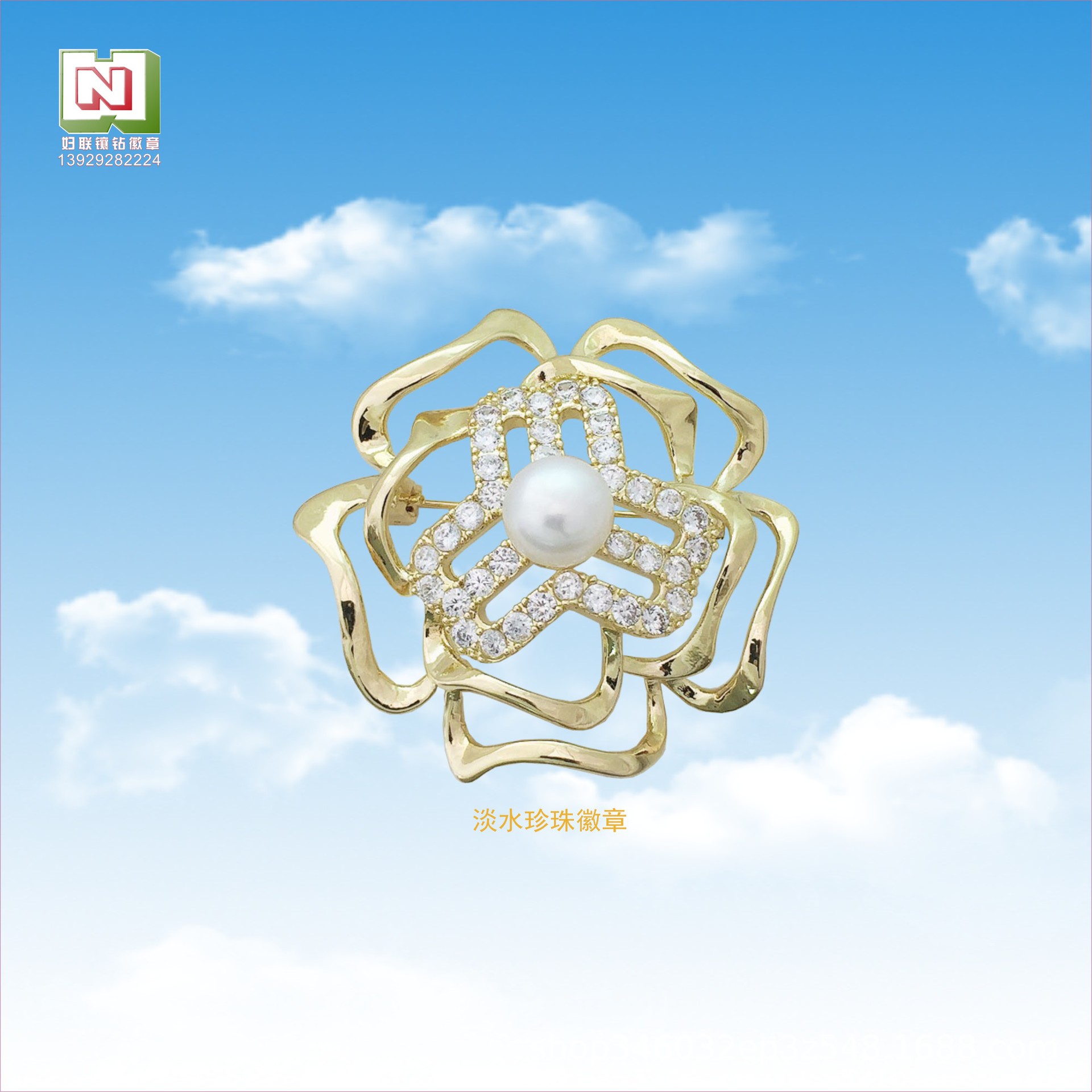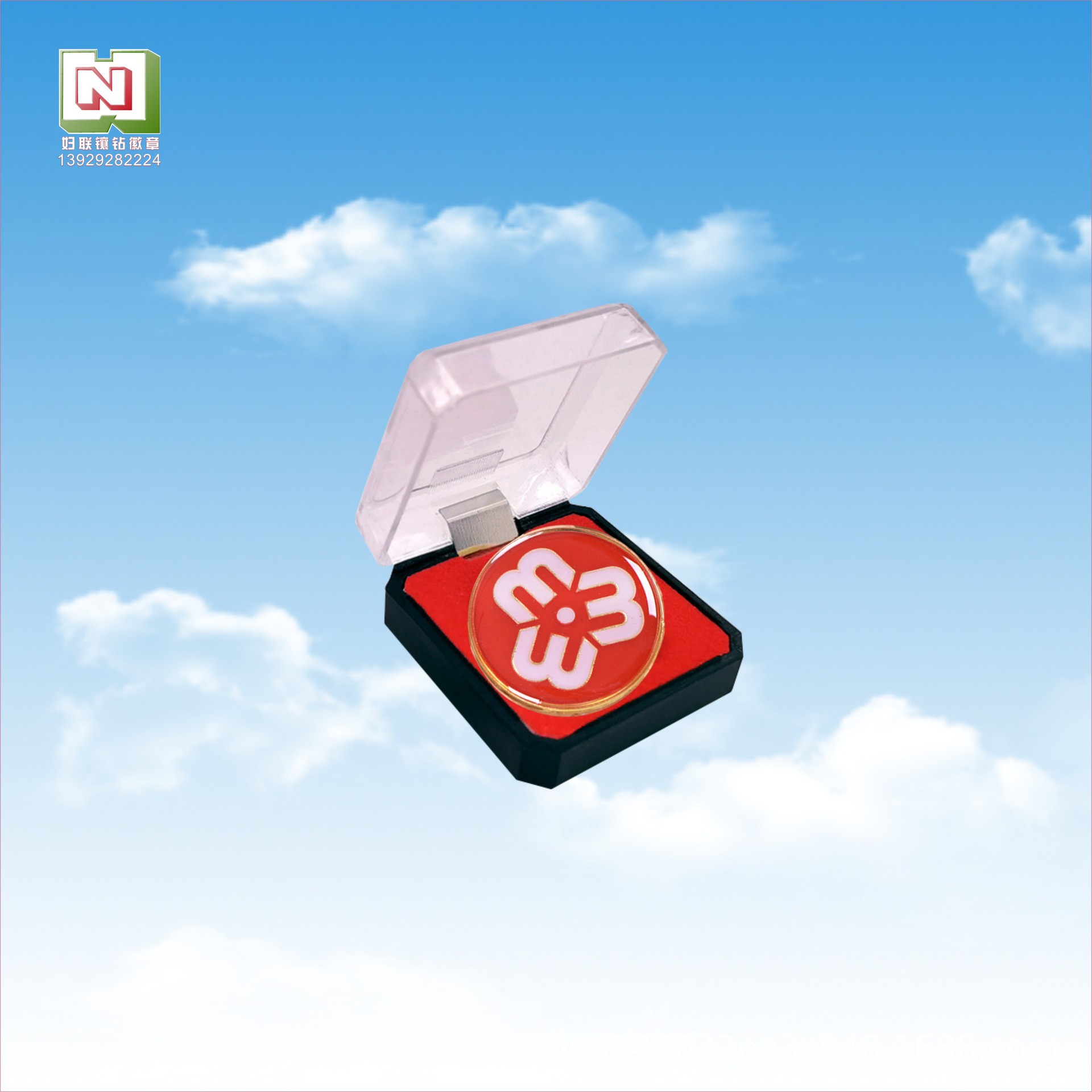 金色银色礼盒包装锌合金镶钻妇联徽章
