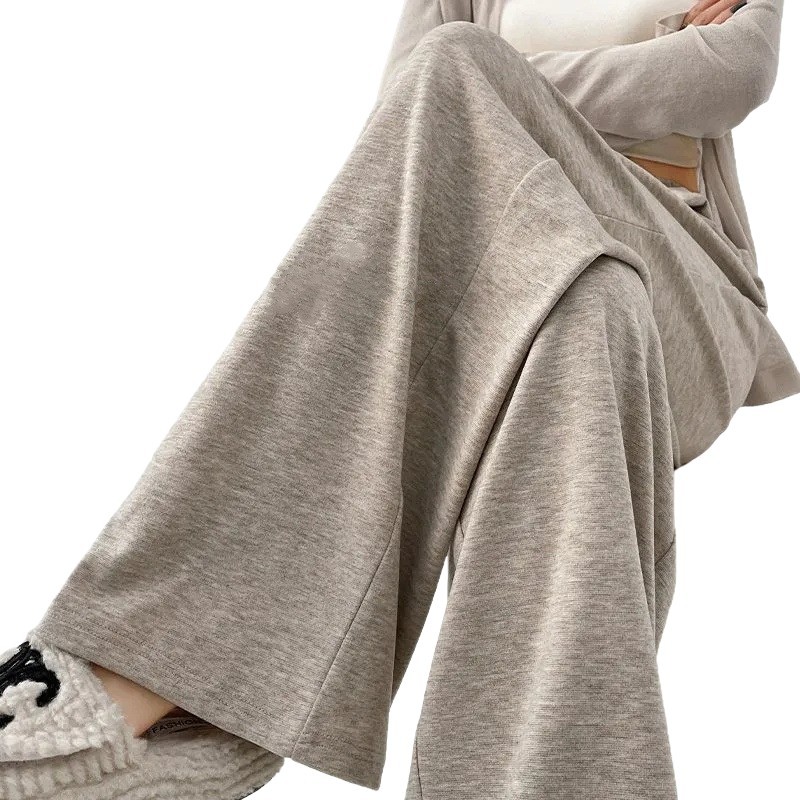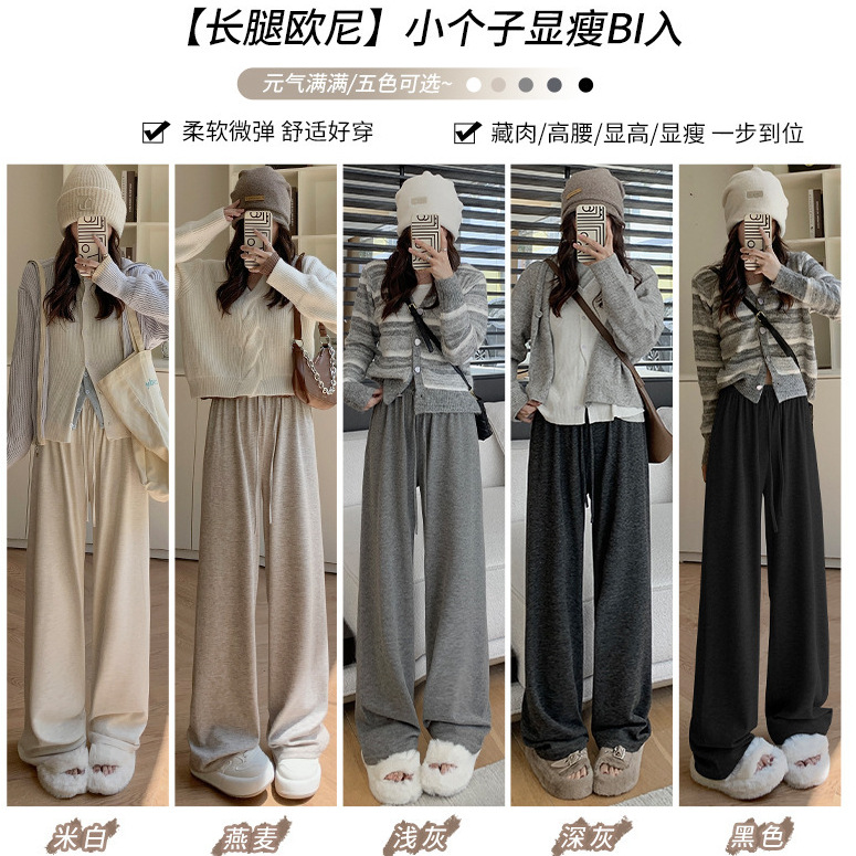 灰色糯米裤女春秋新款高腰垂感休闲直筒裤遛弯慵懒针织软糯阔腿裤