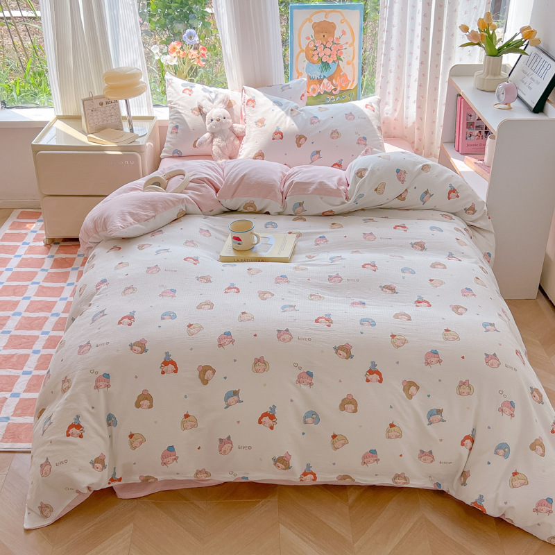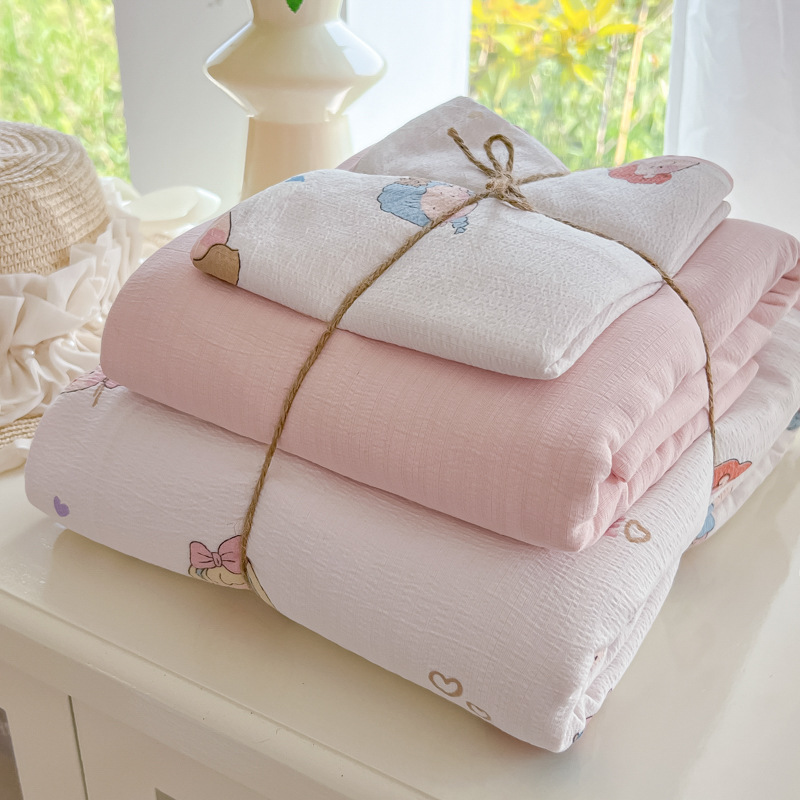 ins风双层纱四件套皱皱纱针织新款网红透气宿舍三件套薄款被套罩