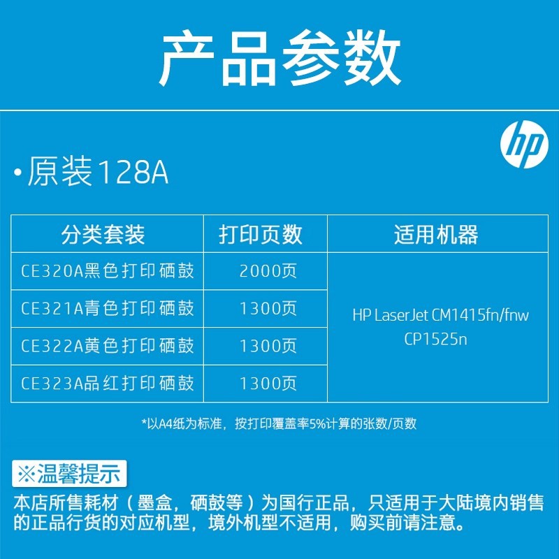 | 适用品牌型号 | 128A CM1415fnw 1415fn CP1525n | 是否可灌粉 | 否 |