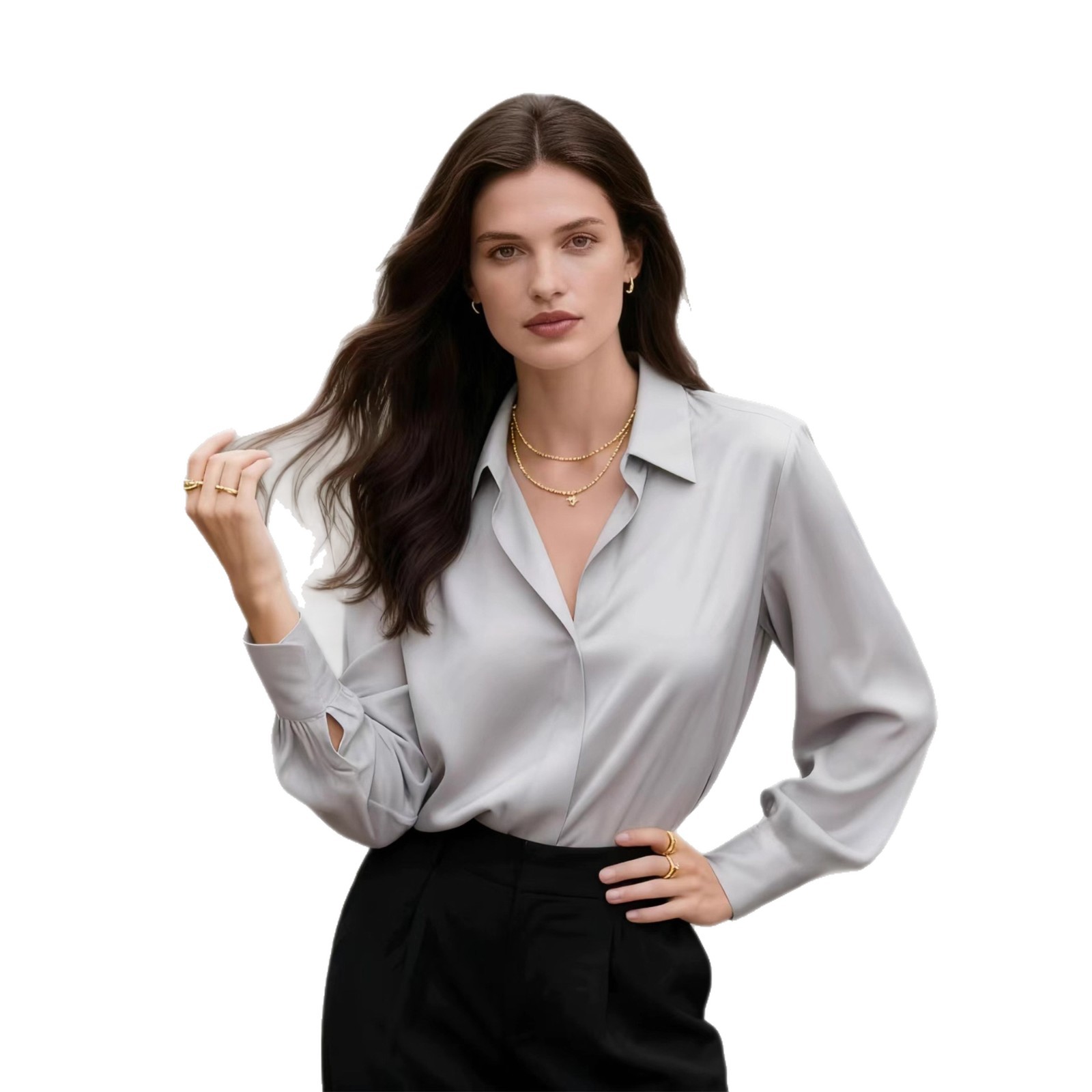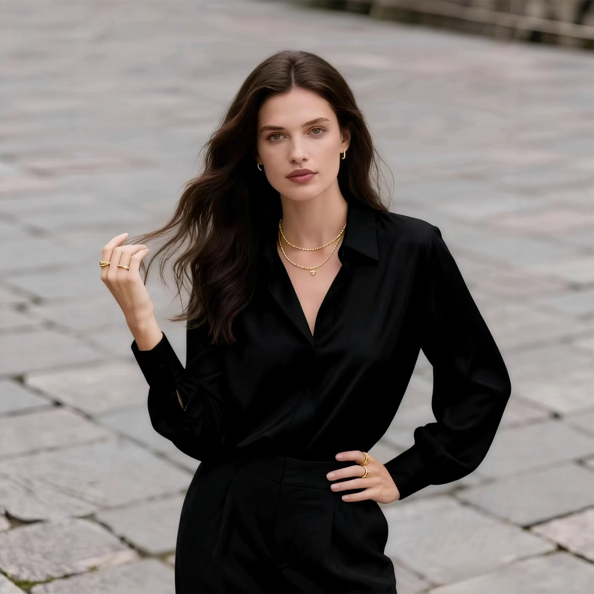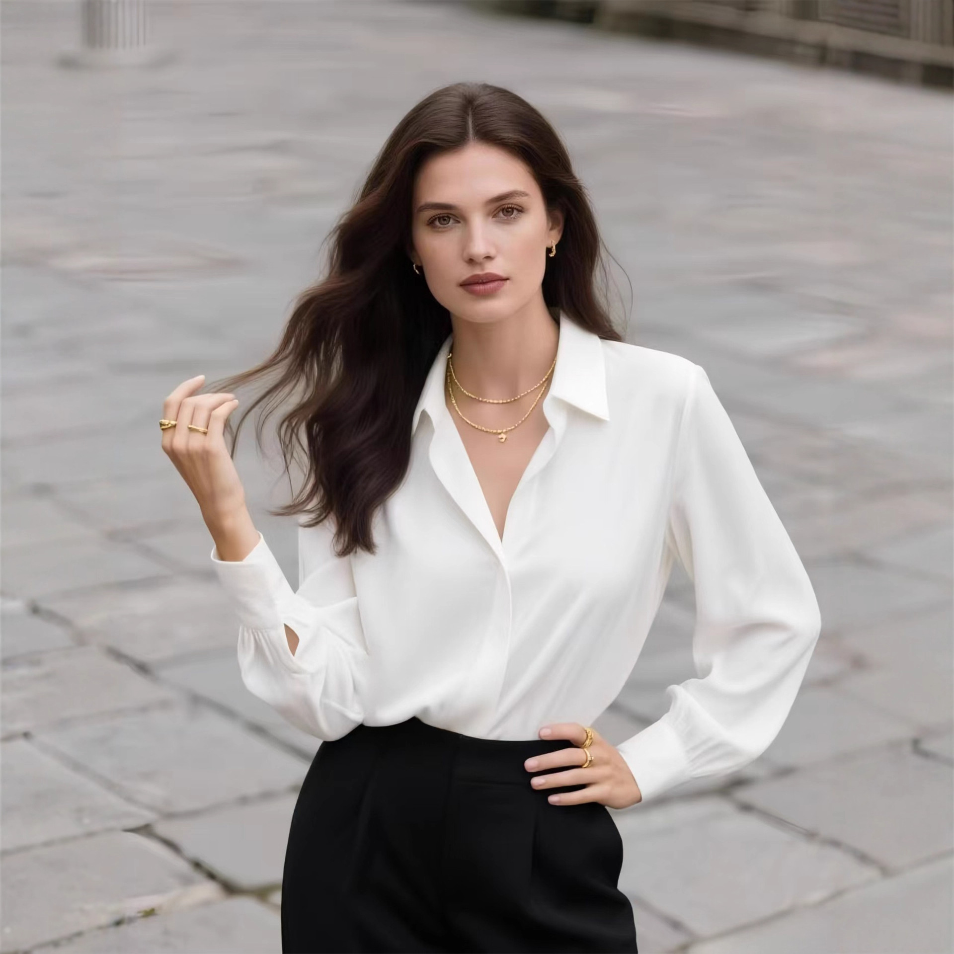 2025欧美跨境新款女士长袖衬衣气质百搭高级感宽松慵懒风职业女装