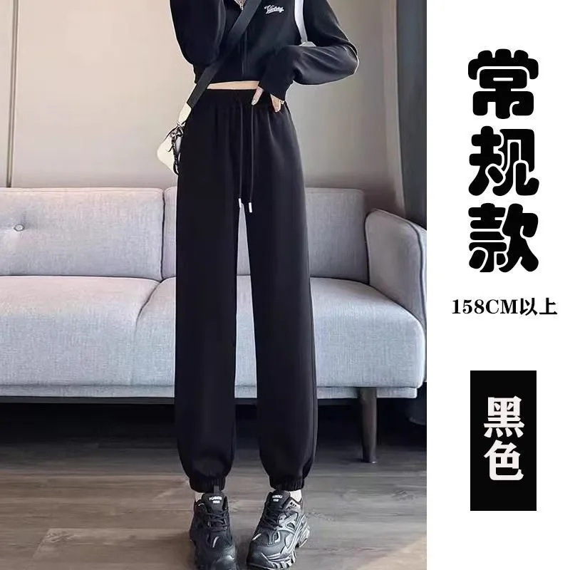 束脚运动裤女秋季2025新款宽松高腰显瘦九分裤黑色小个子休闲卫裤