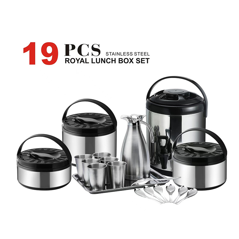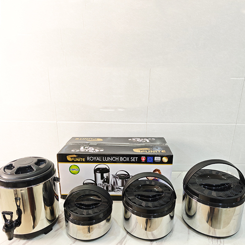 FUNITE 19PCS非洲保温提锅套装跨境不锈钢奶茶桶Lunch box set