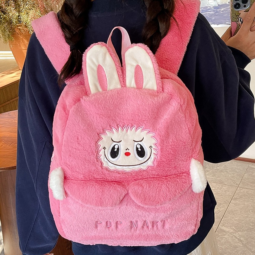 新款时尚可爱大容量毛绒背包少女卡通双肩包小学生书包双肩毛绒包