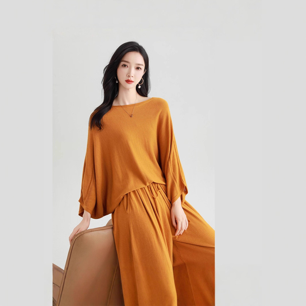 2025秋季新款蝙蝠袖套头针织衫宽松休闲一字领纯色女装上衣毛衣女