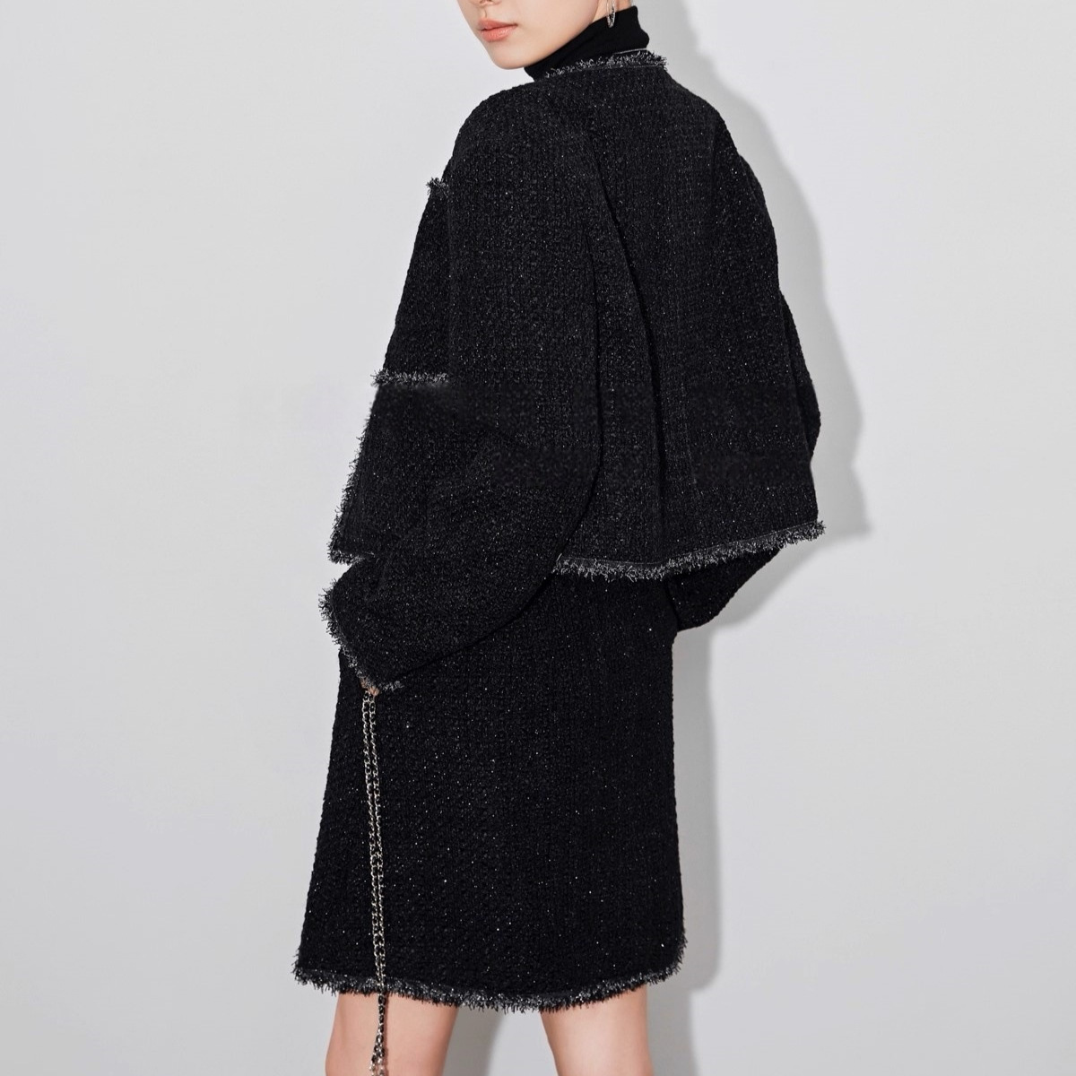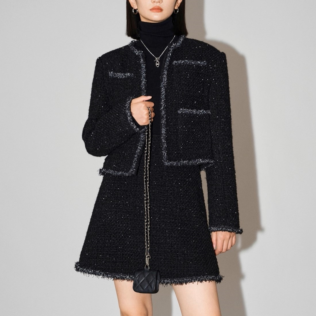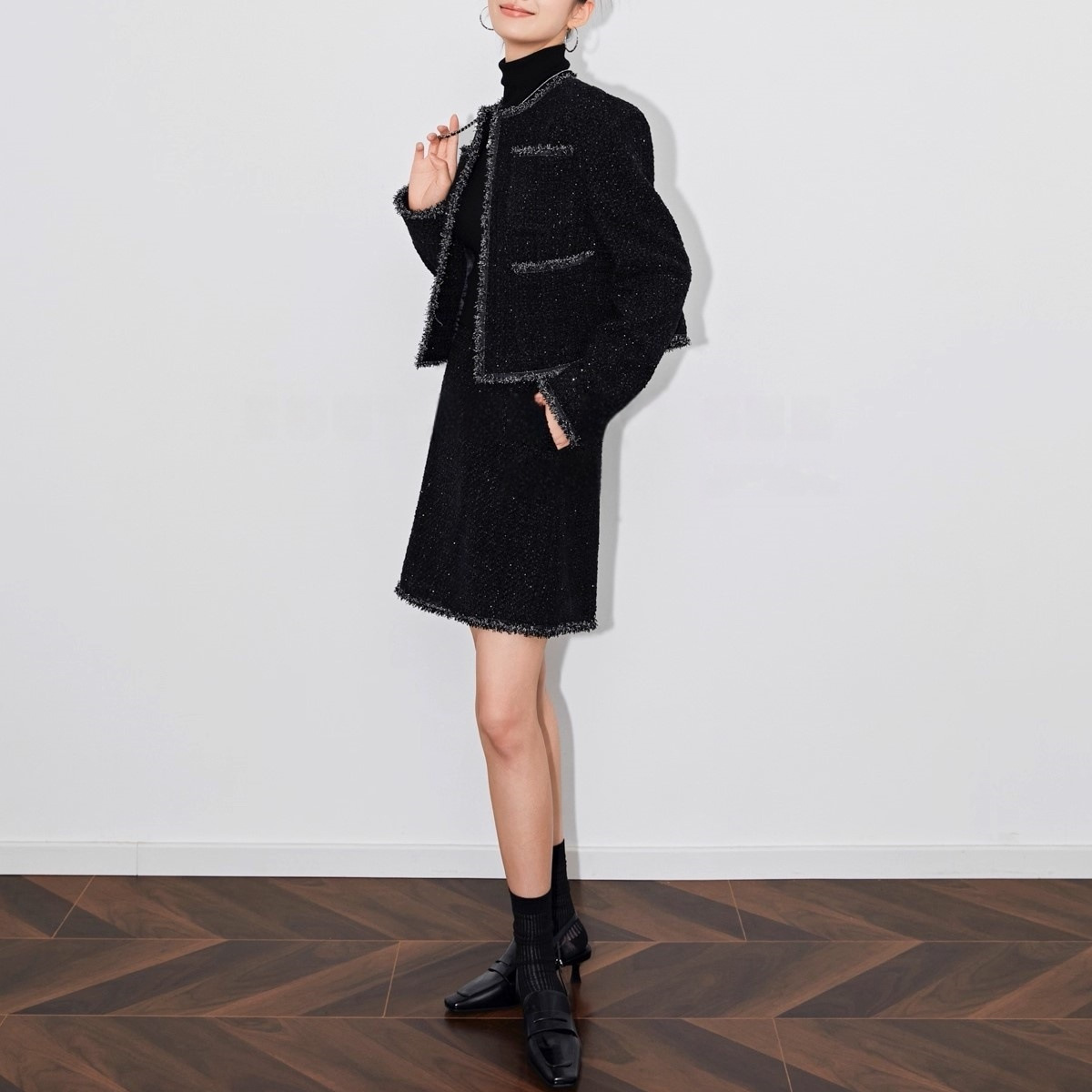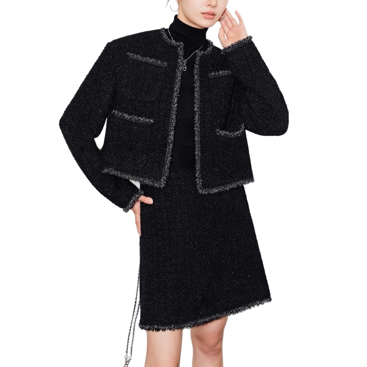 尽情自我!秋冬新款黑色高级感小香风外套半身裙时尚休闲套装女