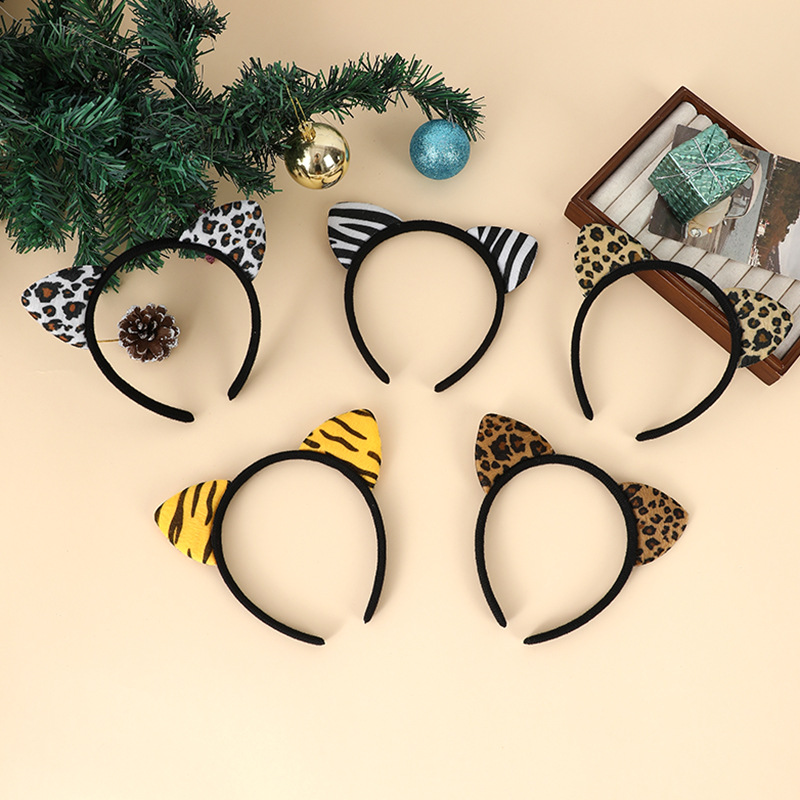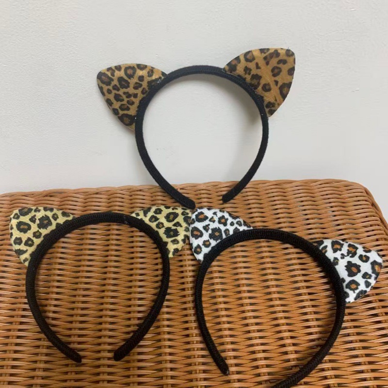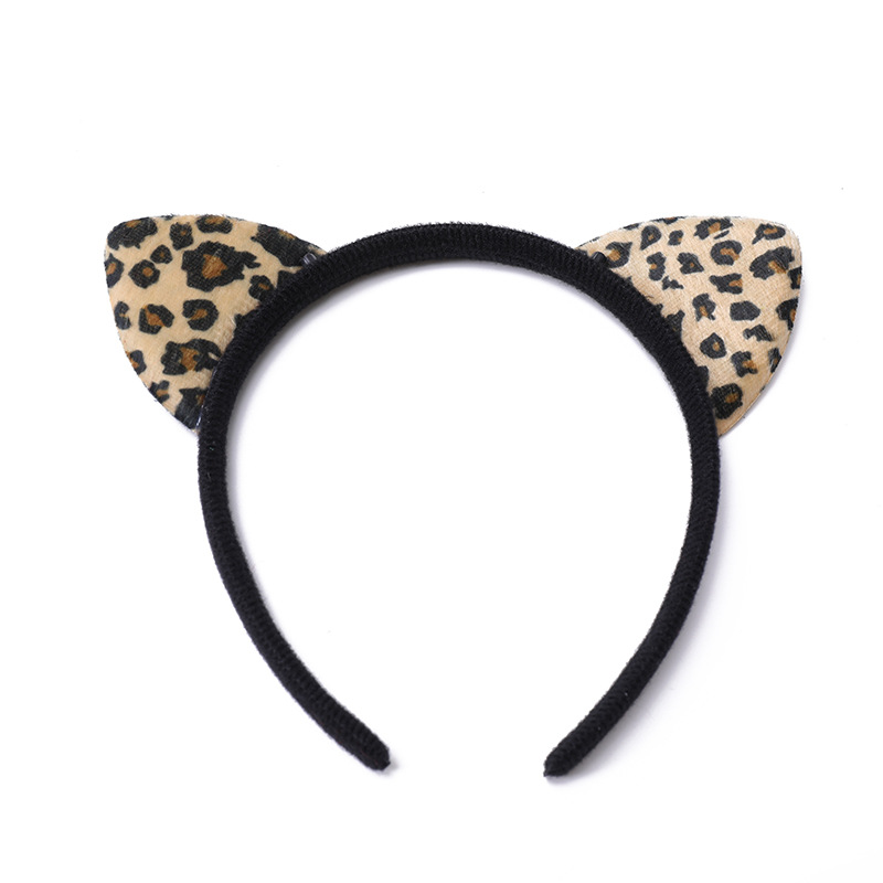 豹纹头箍发箍毛绒豹纹猫耳朵动物耳朵发箍舞会节日豹纹啪啪乐手环