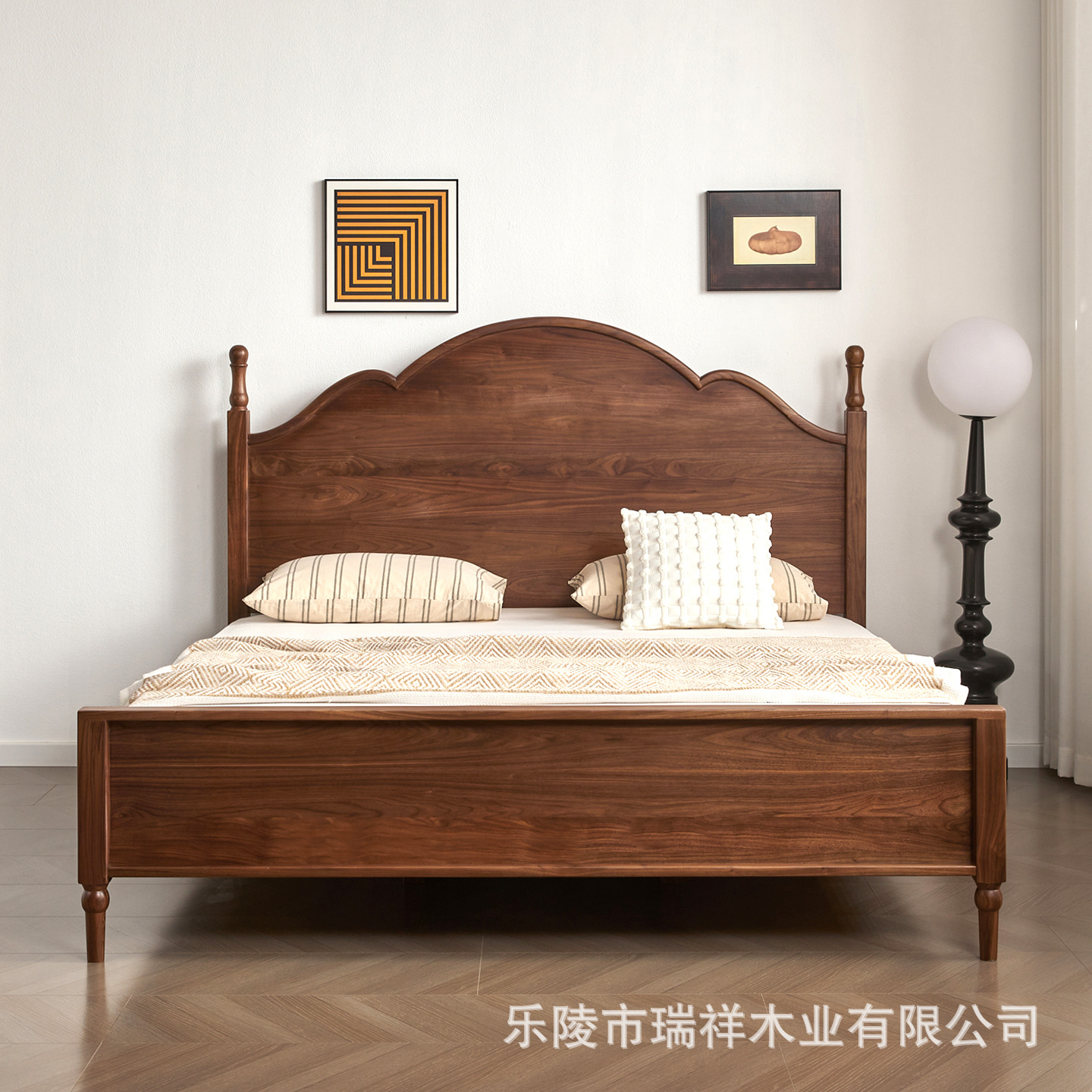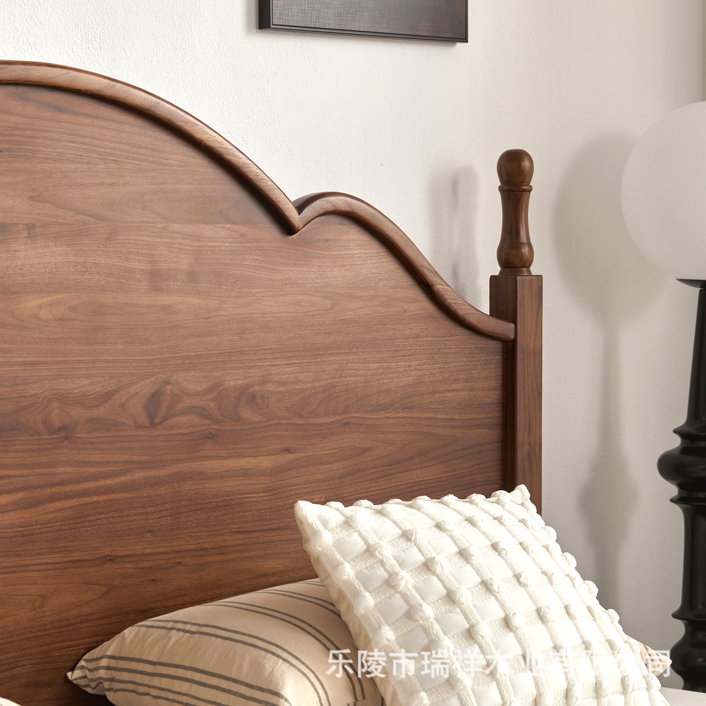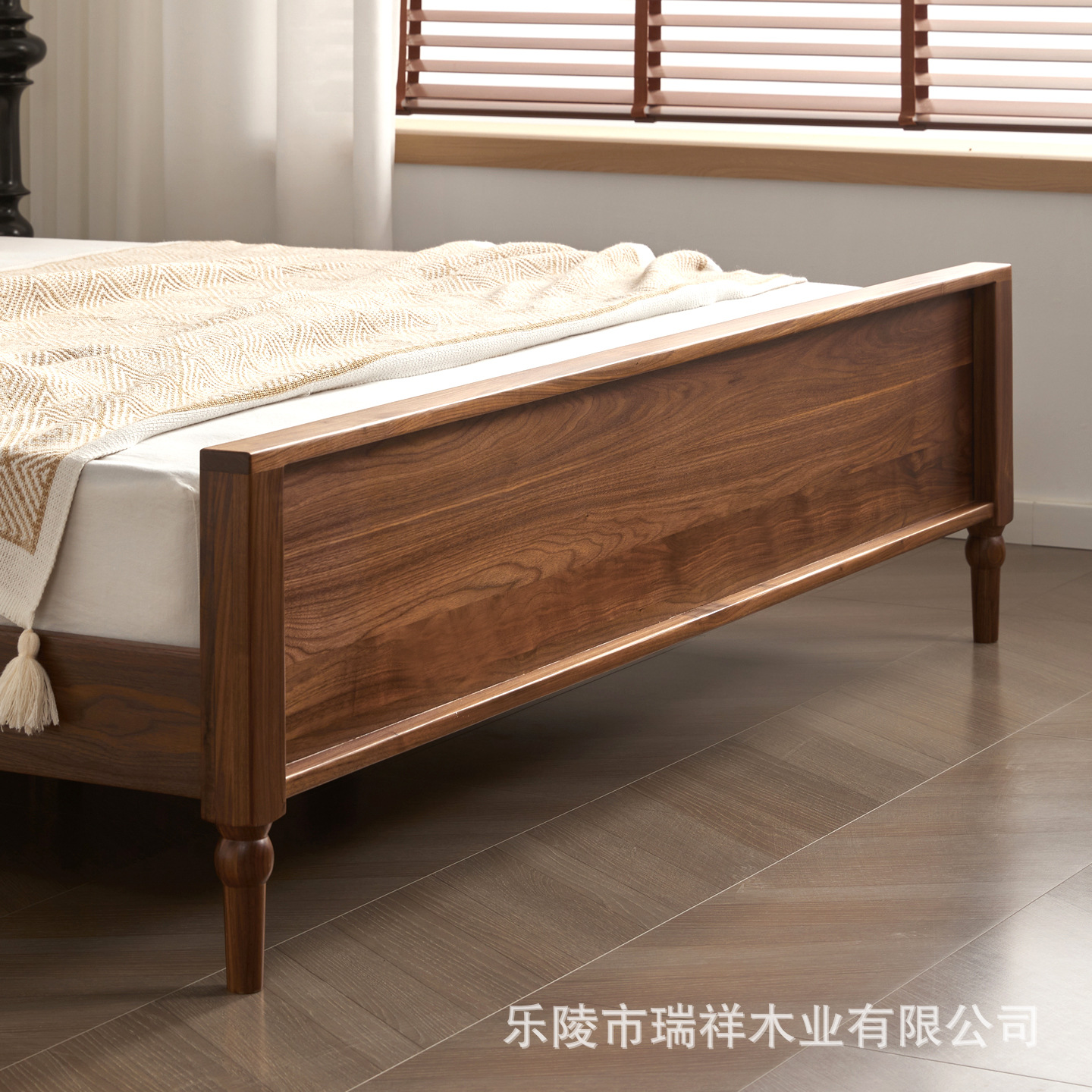 北美黑胡桃木全实木美式复古大板床樱桃木家用卧室中古风双人大床
