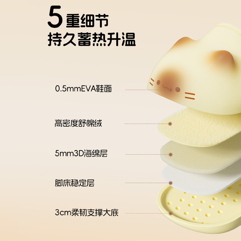 可爱小猫防水棉拖鞋女冬季加绒保暖情侣居家厚底棉拖鞋男小氖黄