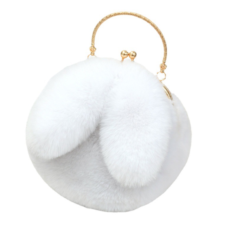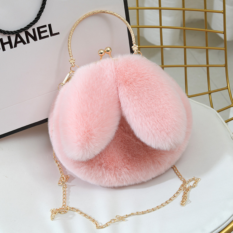 新款女兔耳朵单双肩斜挎小挎包毛绒包包皮草仿兔毛链条公主时尚包
