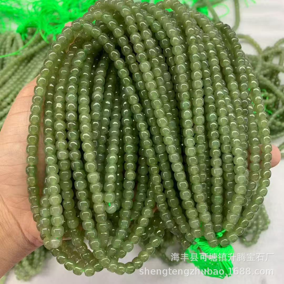 青海料和田玉约5×6m老型佛珠 晴水色水头足 可DIY手串项链配饰