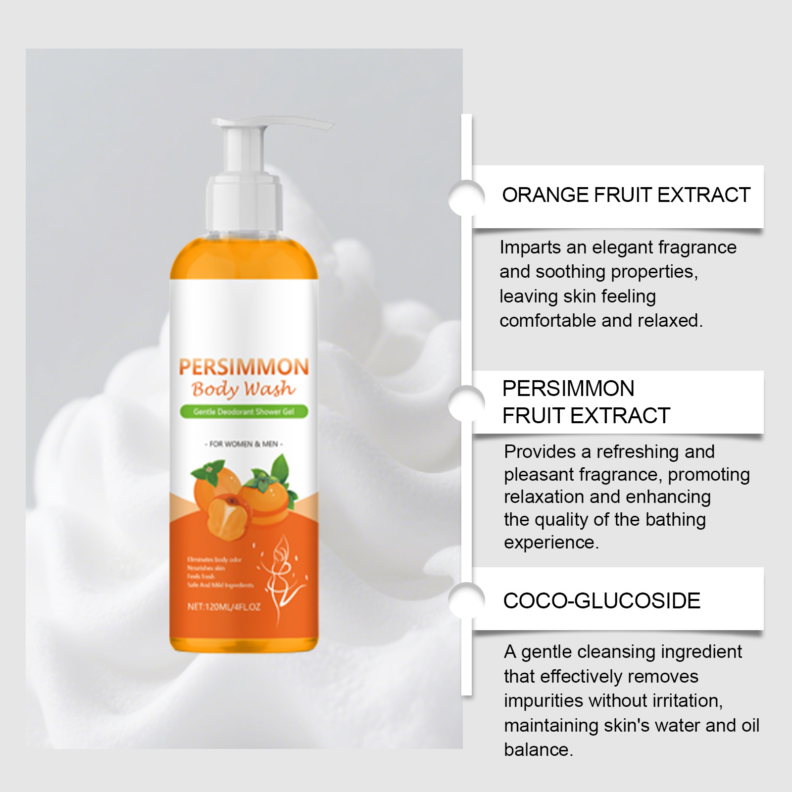 滋养身体沐浴露 香橙香氛温和清洁滋润身体肌肤清爽保湿沐浴露