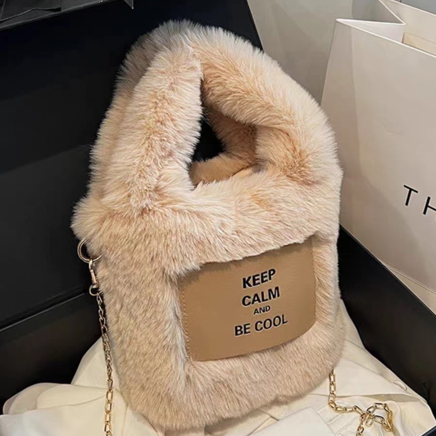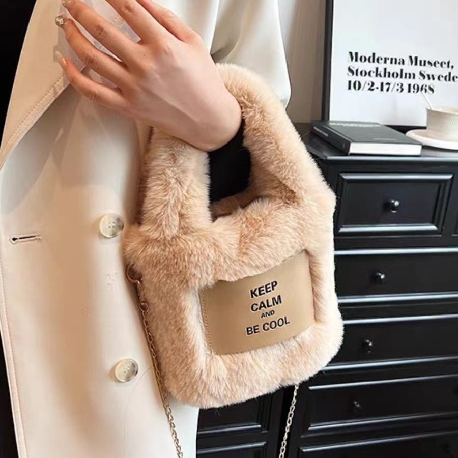 新款毛绒水桶包包网手提零钱收纳手机化妆包蓬松2023秋冬新款斜挎